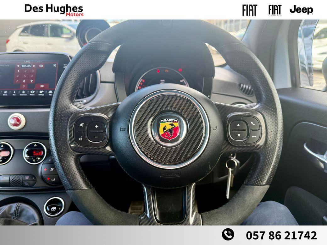 Contact COLIN for anymore info on 087 0541111. Fiat Abarth 500 1.4 turbo 180 bhp 595 competizione model. Fiat service history. 2 years nct. 12 months warranty. 12 months road side assistance. Trade ins welcome. Finance available. Contact COLIN for anymore info on 087 0541111. Established in 1987, Des Hughes Motors brings decades of experience to the motor trade. We proudly represent Fiat, Jeep, and Fiat Professional across Laois and the surrounding counties. Previously serving as the main Toyota dealer in Laois for nearly 30 years, we remain the only authorised Toyota repairer in the county. Whether it’s your first or tenth vehicle purchase from us, we’re committed to ensuring you drive away happy. We operate with a transparent pricing policy — each vehicle is price-checked weekly, taking into account mileage, condition, specification, and warranty to ensure you always get the best value. Every vehicle we sell goes through a comprehensive pre-sale process, including: Full history check Tyre inspection (4mm tread minimum) Full vehicle service Complete valet and clean Opening Hours: Monday–Friday: 9:00 AM – 5:30 PM Saturday: 9:30 AM – 2:00 PM Closed on Bank Holiday weekends Get in touch: 📞 057 86 21742 📧 sales@deshughes.ie 💻 Apply for finance anytime at www.deshughes.ie.