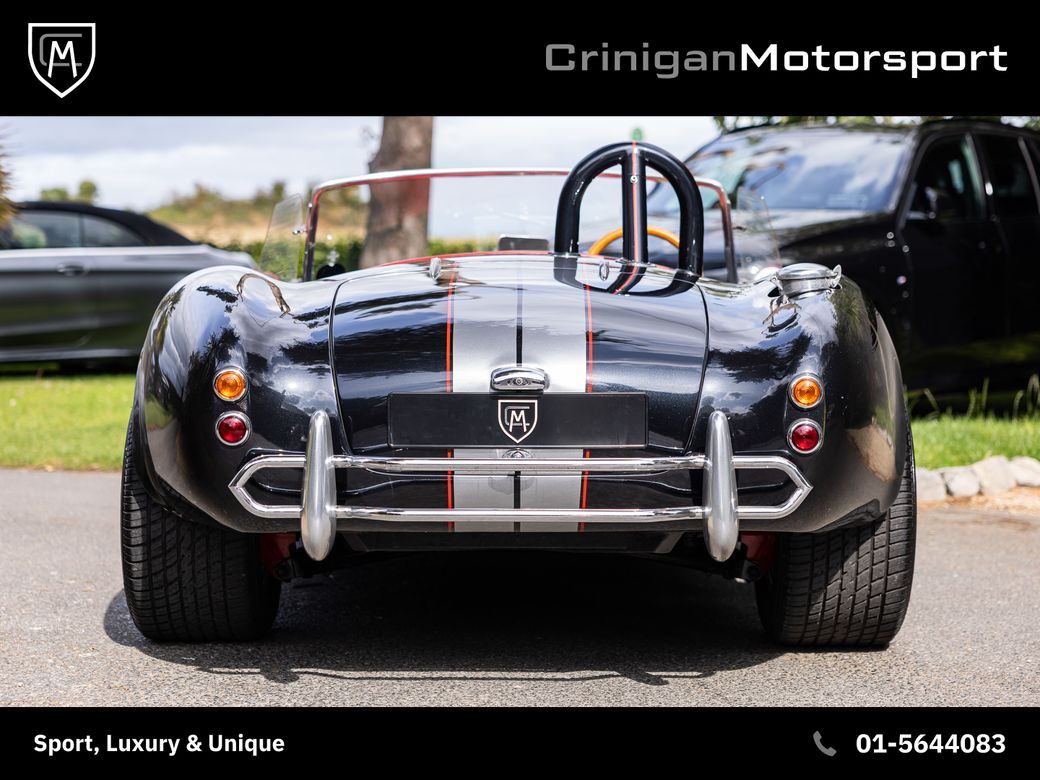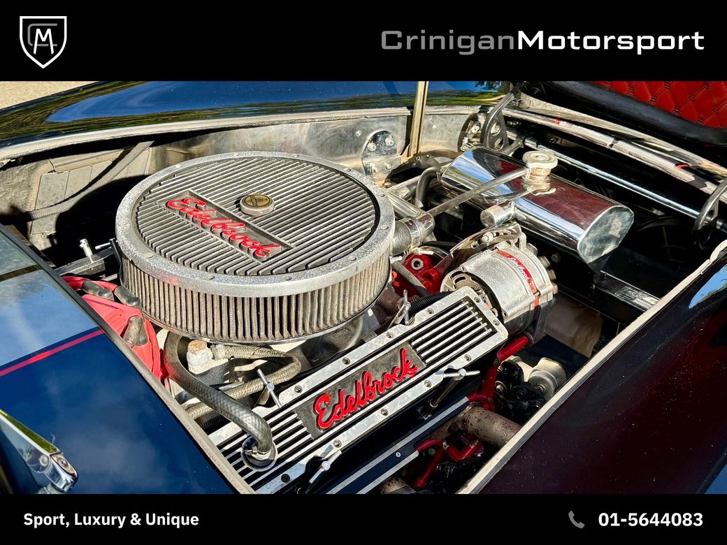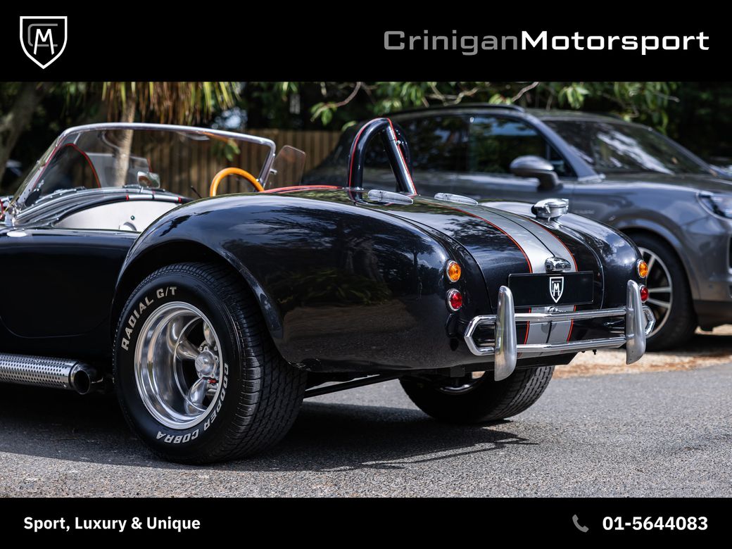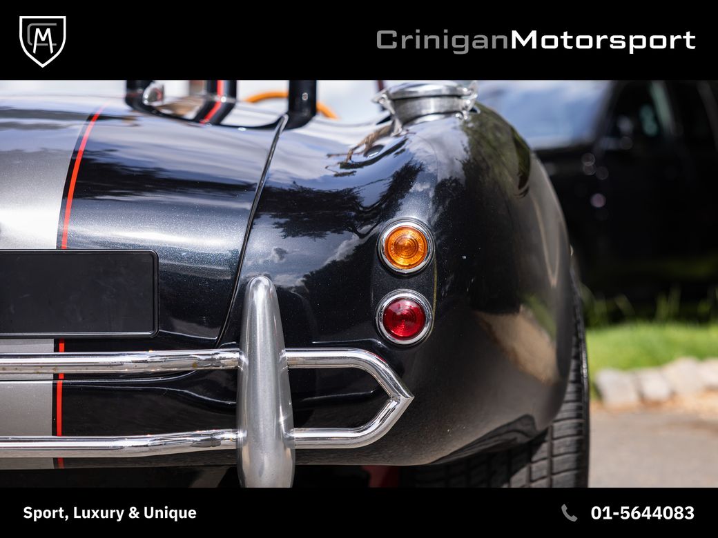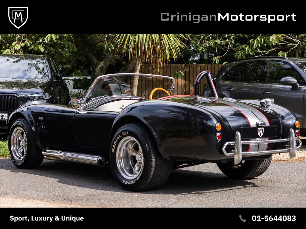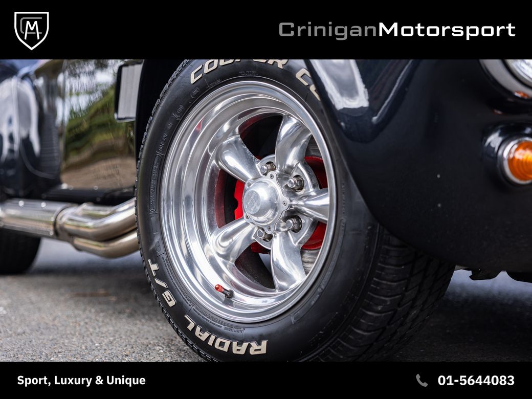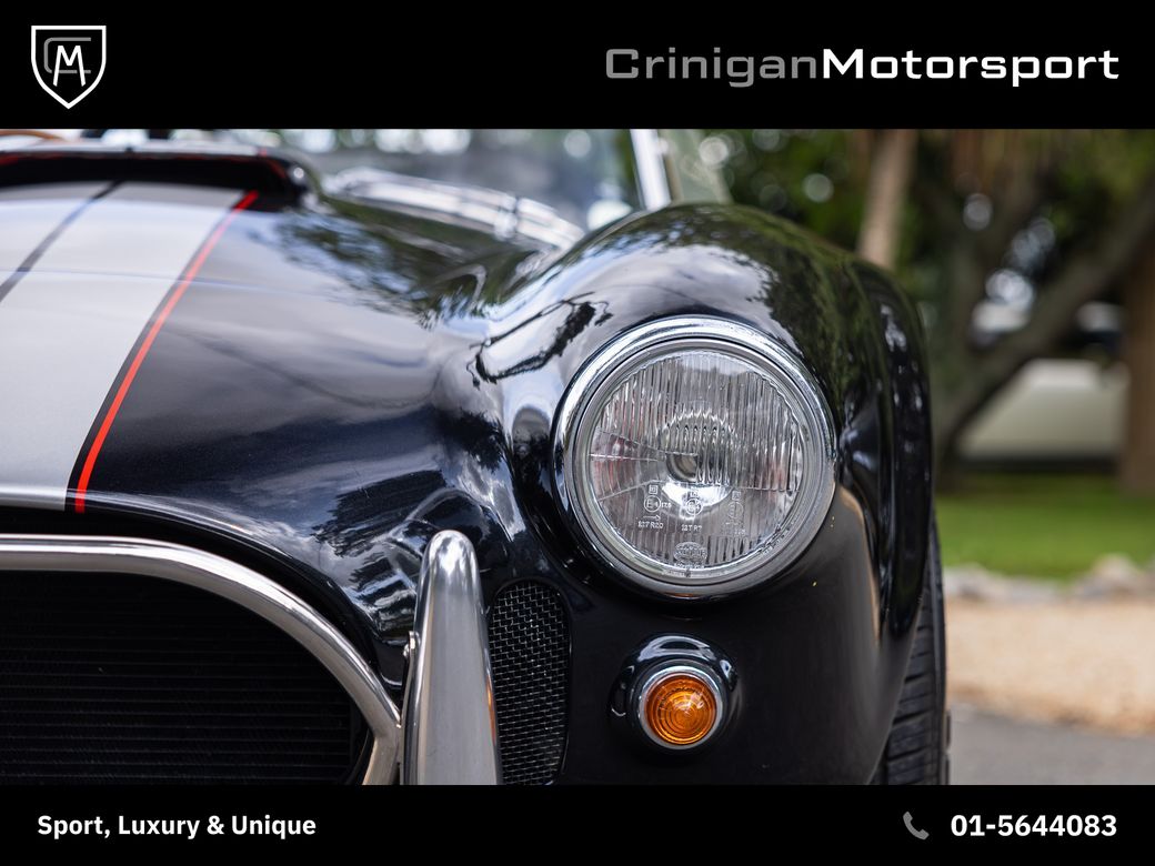 New arrival is a 1994 KCC Cobra presented in Raven Black Metallic, complemented by Red Leather interior and further enhanced by a Carbon Effect interior trim. KCC were based in Boksburg, South Africa from 1982-2003 and specialised in numerous replica models, including the AC Cobra. Their aim was to be visually faithful to the original AC Cobra with curvy bodywork, prominent front grille, side exhausts and also equipping them with American V8 engines playing homage to the the original machine. This particular example comes with the Edelbrock tuned V8 incorporating: Flat-top Pistons Heavy Duty GM Con-rods Edelbrock Performance Cam Hardened Push Rods, Followers and Roller Rockers Edelbrock Aluminium Gas-Flowed Heads Edelbrock 600 Carburettor and inlet manifold Side Screamer Exhausts with the above combination developing 430BHP & 380lb-ft. Other notable mentions include: Polished Amercian Racing Torque Thrust II Alloys Cooper Cobra Tyres 5 Speed Getrag Manual Gearbox Cobra Head Gearstick Sparkling Graphite with Red Outline Racing Stripes The ultimate head turner which will result in legal letters from your neighbours due to the noise. *We operate on an appointment only basis, please call first to arrange a viewing* Crinigan Motorsport is an SIMI 2025 Approved Dealership - Take a look at our 5 Star Google Reviews from previous valued clients. We arrange Finance at the most competitive rates available and usually have a decision within the hour. We welcome Trade-ins of all kinds and can provide a rough estimate over the phone subject to info. All our vehicles come with a comprehensive warranty, 2 keys & a new NCT if required. Have a look at our daily updated Instagram & Facebook Page www.crinigan.ie SIMI Dealer 2025 5 Star Google Rated Dealer Crinigan Motorsport is a Luxury & Performance vehicle dealership based in Dublin. Owned by two brothers Adam and Jamie, the Crinigan family have been in the motor trade in Ireland for generations and over the years have built a fortified reputation not only for supplying exclusive vehicles at exceptional prices, but also for an aftersales service that is second to none, backed up by our customers online reviews. We do not believe in high pressure sales environments and take a more relaxed, personable approach. We operate on an appointment basis only, to ensure each customer gets our full and undivided attention. Our services range from nationwide luxury vehicle sales to worldwide supercar sourcing and everything in between. So if you would like to talk, we would love to hear from you.