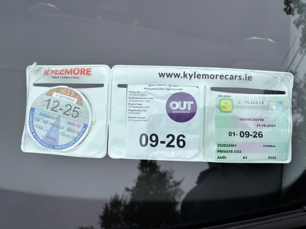 VIEWING BY APPOINTMENT ONLY AUDI A3 - 35 TFSI 1.4 PETROL (150HP) S TRONIC AUTOMATIC - PEARL WHITE EXERIOR / BLACK CLOTH INTERIOR - AUDI VIRTUAL COCKPIT - KEYLESS ENTRY / PUSH BUTTON START - REVERSE CAMERA - FRONT & REAR PARK SENSORS - BLUETOOTH PHONE / MUSIC STREAMING / USB CONNECTIVITY - CENTRE ARMREST - LEATHER MULTI FUNCTION STEERING WHEEL - MULTI ZONE CLIMATE CONTROL - ELECTRIC FOLDING MIRRORS - ADAPTIVE CRUISE CONTROL - SUN PROTECTION GLASS - FRONT FOGS - ISOFIX - MULTIPLE AIRBAGS - REMOTE CENTRAL LOCKING ALARM - 2 X KEYS - NCT 06/26 - TAXED 01/26 / €200 ANNUAL - SAME DAY FINANCE / TRADE INS WELCOME / NATIONWIDE DELIVERY AVAILABLE.