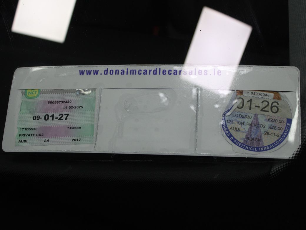 The 2017 Audi A4 1.4 TFSI 150 SE Ultra is a premium saloon that perfectly balances performance, efficiency, and comfort. Designed with Audi’s signature styling and refined interior finish, this model offers a smooth and responsive driving experience powered by a reliable 1.4L TFSI petrol engine producing 150bhp. Inside, the A4 delivers a spacious and high-quality cabin with ergonomic design and modern technology, ensuring maximum comfort for both driver and passengers. The SE Ultra trim provides a range of practical features ideal for everyday driving, including climate control, multifunction steering wheel, Bluetooth connectivity, cruise control, and advanced infotainment system. Built with efficiency in mind, the Ultra model offers impressive fuel economy without compromising on performance, making it an excellent choice for both city commuting and longer motorway journeys. With its sleek exterior design, premium interior, and renowned Audi build quality, the 2017 Audi A4 is a stylish and dependable option for anyone seeking comfort, practicality, and a touch of luxury in their daily drive. For more details and to organise a test drive or any other questions please give Barry a call on 0879137581 we are always happy to help in any way that we can!!! At Donal McArdle Car Sales you can buy with confidence, with over 20 years experience in the motor trade we have built up a superb reputation for high quality cars and first class customer service. All our AA Approved Cars come with a 1YEAR AA Membership with full roadside assistance, 101 point inspection. We can source any car, colour or spec you desire. All our cars come VRT Paid on irish plates with a cartel report and will be delivered to you with a comprehensive warranty. For out of hours please call Barry on 0879137581. Finance arranged! We are an authorised credit intermediary for AIB Finance, Close Brothers, First Auto Finance and Bluestone finance. Call Barry on 0419844221/0879137581 to arrange a test drive today. Opening hours Mon Fri 9am 530pm. Sat 10am 3pm. Viewing anytime by appointment. Central Locking, EBD, Parking Sensors, Remote Central Locking, Traction Control, Brake Assist System, Daytime Running Lights