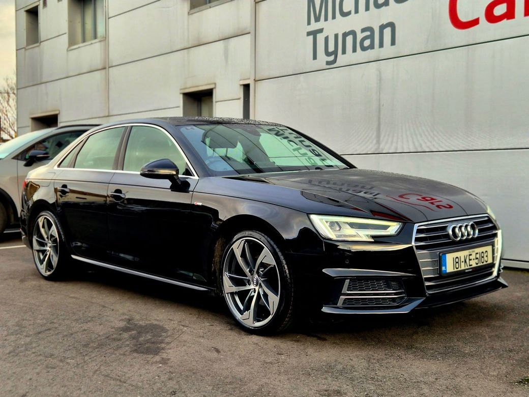 Welcome to Michael Tynan Cars - Conveniently located just off the M50 at Newlands Cross, Naas Road, since 1986. Audi A4 1.4 TFSI S Line Manual Saloon, 19” Alloys, CarPlay, Sat Nav, Cruise Control, Parking Sensors, Wireless Charger, 1/2 Leather - First Registered in February 2018 - Trade in Price €21,555. 1.4 Petrol - 150bhp, 6 Speed Manual, 4 Door Saloon, 19" Alloys, S Line 1/2 Leather Upholstery, Tinted Glass, CarPlay, Fulti Function Steering Wheel, Heated Seats, Air Conditioning,, Parking Sensors - Front & Rear, Bluetooth, Centre Armrest, Traction Control, Auto Lights, Rain Sensing Wipers, Remote Central Locking, Electric Handbrake with Auto Hold, Electric Windows, Electric Retractable Door Mirrors, Daytime Running Fog Lamps, Comprehensive Warranty. Whilst we endeavour to be accurate with all the details and specifications listed, errors can and do happen. Please confirm to your satisfaction the specification of the car you are interested in before putting down your deposit. Specification differences noted afterwards cannot be rectified. Low Rate Finance Available. Part Exchanges Welcome. Best Price Given on Inspection. Quality Cars at Affordable Prices with the Lowest Cost to Change. Thank you for viewing. FULL MAIN DEALER FACILITIES Authorised Service Agent for Kia & Mitsubishi, Family Run Business, Established 1986, SIMI Member, AA Approved, Finance Arranged, Trade Ins Taken, All Cars Fully Serviced, All Cars Fully Valeted, All Cars History Verified, All Cars Warrantied. CHECK OUT OUR REVIEWS ON GOOGLE & FACEBOOK. CALL TODAY TO ARRANGE A TEST DRIVE 01 403 6700.