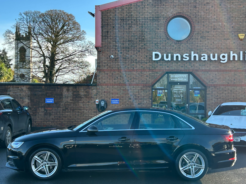 **ONLY TEN MINUTES FROM BLANCHARDSTOWN SHOPPING CENTRE** 2018 Audi A4 1.4TFSI 150BHP S-Line in immaculate condition throughout with low kms, an excellent service record and huge spec to include: upgraded alloy wheels, parking sensors, reverse camera, folding mirrors, rear privacy glass, leather upholstery, heated front seats, cruise control, sport seats, auto lights & wipers, bluetooth telephone system, touch screen media control unit, front centre armrest, abs, esp, isofix, multiple airbags etc. For further information, please contact Barry on 01 8017777 / 086 3358879.