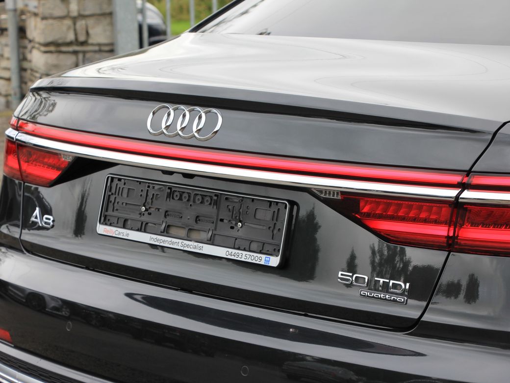 Welcome to Reilly cars, We are an independent Specialist dealer established in 1983 and trading from the same location since! We have an exclusive partnership with a major group and hence supply the best spec, lowest mileage cars available @ great value, We have a great selection of nearly new and used cars in stock in Abbeyshrule village (Longford / Westmeath border), Please call us if you would like any info or to arrange a viewing 04493 57009. 192 A8 S Line 50 Edition 3.0 V6 TDi 286Bhp Quattro Tip Tronic with sport mode Finished in Metallic Vesuvius Grey FACTORY EXTRAS INCLUDE: + Technology pack inc : Virtual cockpit Wireless phone charging, + Adaptive Radar Cruise control, + Matrix Adaptive auto dim led lighting, + Fully Electric, memory seats & steering column + Electric steering adjustment + S Tronic with steering paddle shift, + MMI Navigation plus with twin touch screen MMI displays, + Piano Black center console , + 3D HD navigation, + Audi Apple play & Android play, + Heads up windscreen Display, + Advanced park with reverse camera, + Lane assist, + Audi connect - Onboard WiFi, + Lighting pack ( Matrix LED headlights, Auto headlights, Dynamic LED indicators, Interior LED ambient lighting) + Driver and Passenger Heated & Full electric memory seats with 4 way lumbar adjust + Quilted Black Valcona Leather + S Line embossed sport seats + Audi drive select, + Audi Pre Sense, + Lane departure warning, + Camera based traffic sign recognition, + Audi connect, + Audi drive select, HPI CHECKED WITH CERTIFICATE FROM CARTELL, SUPPLIED WITH; + SERVICE + HEALTH CHECK COMPLETE WITH AUDI DIGITAL PRINT + COMPREHENSIVE WARRANTY, + AUTOGLYM LIFESHINE TREATMENT, WE ARE A 2025 SIMI APPROVED INDEPENDENT AUDI DEALER, OPERATING FROM THE SAME PREMISES FOR FORTY TWO YEARS, TRADE-IN WELCOME, We open Mon-Fri 8.30am - 5pm Evening & Weekend Appointments also available. All viewings by appointment only please, viewings can be booked for a time that suits you, on reillycars.ie or by calling 04493 57009, please note some vehicles may not be stored on site so please phone ahead to avoid disappointment. FINANCE AVAILABLE (Subject to minimum deposit or trade-in value of €6,500 on this car), Call to book your personalized viewing & test drive 04493 57009.