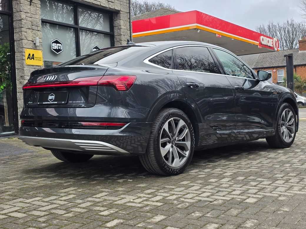 STUNNING 2022 AUDI E-TRON 55 QUATTRO SPORT SPORTBACK. FULL SERVICE HISTORY. TWO KEYS. SPEC: -FULL BLACK LEATHER WITH HEATED SEATS. -TOUCH SCREEN MMI SYSTEM. -AUDI SPORT ALLOY WHEELS. -DUAL ZONE CLIMATE CONTROL. -AIR CON. -SAT NAV. -REV CAMERA. VIEWING BY APPOINTMENT ONLY 7 DAYS A WEEK Flexible times available to suit you. NATIONWIDE DELIVERY AVAILABLE Fast, reliable transport anywhere in Ireland. SIMI DEALER 2025 Fully accredited by the Society of the Irish Motor Industry. ONLINE FINANCE AVAILABLE Apply easily through our new userfriendly website. OPEN SINCE 2002 Over 20 years of trusted experience in the motor trade. FAMILY OWNED A business built on trust, integrity, and personal service. APPROVED SIMI DEALER Committed to the highest industry standards. CREDIT INTERMEDIARIES Working with numerous finance houses to offer tailored finance options.