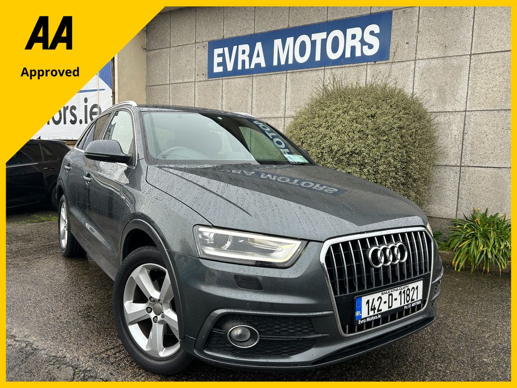JUST ARRIVED!! This AUDI Q3 1.4 TFSI S-LINE 5DR.. In stunning condition inside and out.. A fantastic car to drive.. It comes with a huge spec including.. Call Mark for more info on Ph 083 303 6593 or email mark@evramotors.ie - Partial Service History - Two Keys - Reverse Sensors - Electric Boot - Sat Nav - Alloys - Multi Functional Steering Wheel - Electric Windows - Air Con Here at Evra Motors we have a friendly knowledgeable sales team with over 20 years experience in the business. We are proud to be an AA Approved dealer with peace of mind as standard. We aim to stock a wide range of over 300 carefully selected premium AA Approved used cars all sourced directly from main dealerships here in Ireland. We aim to supply all our cars at the most competitive prices in the country. Extended warranty available on certain makes and models. Delivery can be arranged throughout the country. Each of our retail cars comes with a detailed history report and fully serviced or health checked by our in house service team of mechanics, a valid NCT will be provided and every car will be valeted prior to collection. Tailored finance packages available. We are open 6 days a week. For more information on our cars please contact Mark on Ph 083 303 6593 or email mark@evramotors.ie Due to a high turnover in stock we recommend that you contact our sales team to make sure the car is still available and to make an appointment.