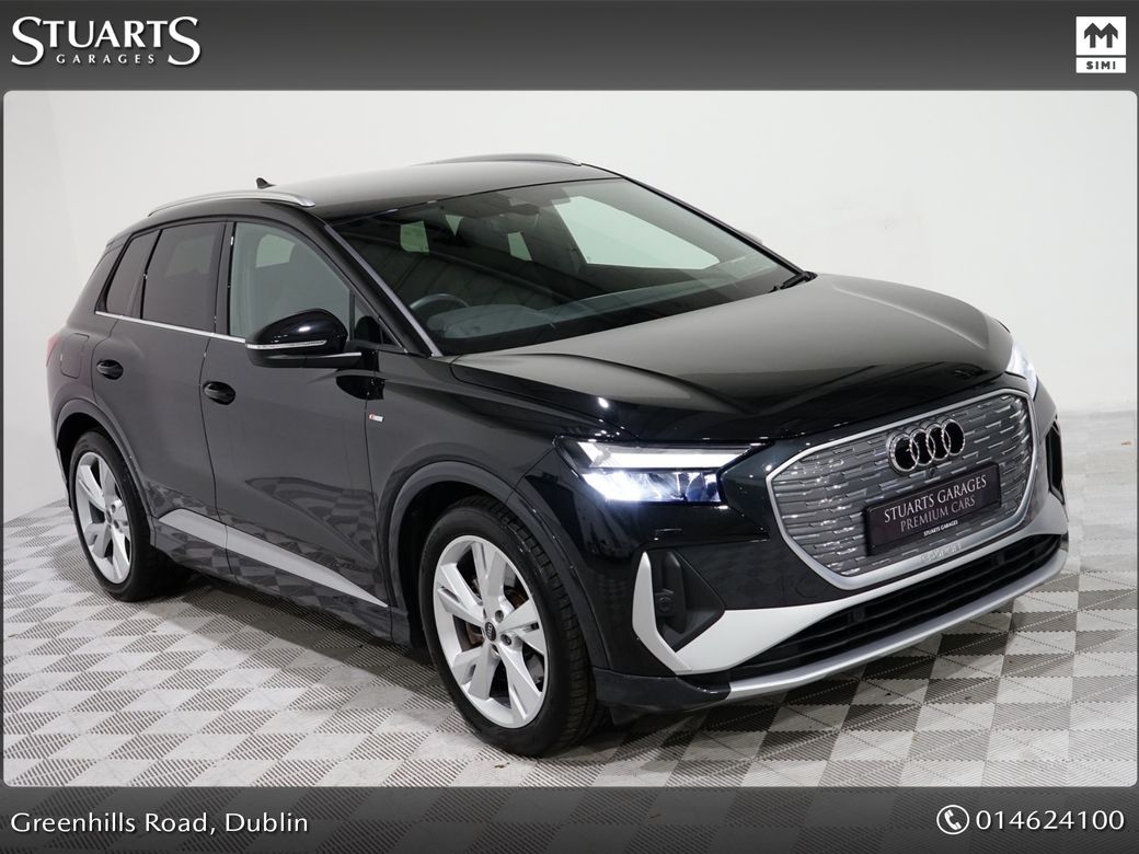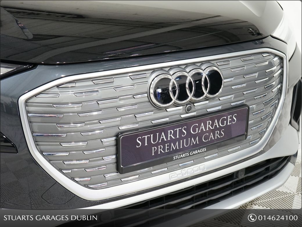 ***SOLD DEPOSIT TAKEN*** S/LINE 45 – BIGGER BATTERY 242 REGISTERED • Q4 E-TRON SLINE SUV • MYTHOS BLACK METALLIC • FULL BLACK LEATHER SPORT SEATS • AMBIENT LIGHTING • KEYLESS ENTRY • 20” ALLOYS • HEATED SEATS • REVERSING CAMERAPOWERED BOOT • CRUISE CONTROL • HEATED FRONT SEATS • FOLDING MIRRORS • FRONT AND REAR PARKING SENSORS • APPLE CARPLAY and ANDROID AUTO • At Stuarts Garages, we specialise in High Quality Premium Pre-Owned Cars. • This particular Q4 E-Tron comes with the balance of manufacturer’s warranty • 12 months AA Roadside Assist. • Attractive finance options are available upon request. • Call today for further information or to arrange a test drive. • Stuart’s Garages, Trading since 1946.