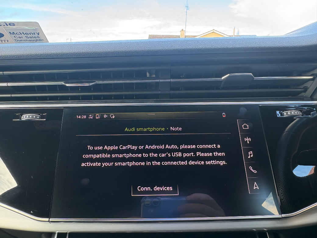 Call Adam or Barry-John on 0862062981 or 01 8017777 to find out more about this stunning Audi Q8 S-Line, We can offer a click and deliver or click and collect service if a customer wishes, This car comes fully serviced, warrantied, trade ins accepted and finance can be arranged. We are a SIMI approved dealership who specializes in premium cars and we are located just 10 minutes from Blanchardstown Shopping Centre just off the M3. Our Eircode is A85 DK15. We are located on Dunshaughlin Main street on the Navan side of the village. Anti-Theft System, Central Locking, EBD, Multiple Air Bags, Parking Sensors, Rain Sensors, Remote Central Locking, Traction Control, Brake Assist System, 2 Keys Available, Automatic Lights, Automatic Wipers, Daytime Running Lights, Engine Immobiliser, Hill-Start Assist, Isofix Points, Reversing Camera, LED Headlights, Service History