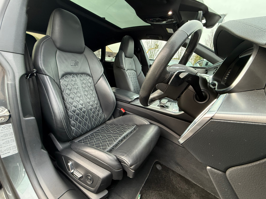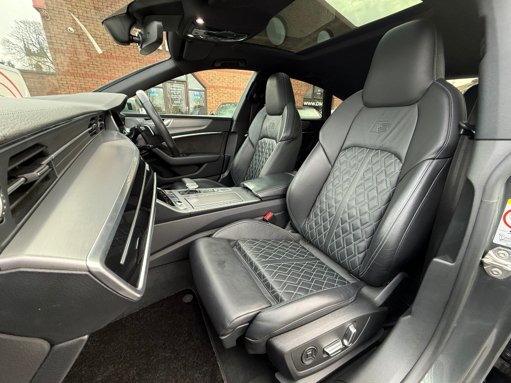 **ONLY TEN MINUTES FROM BLANCHARDSTOWN SHOPPING CENTRE** 2020 (202) Audi S7 3.0 TDI 350BHP Quattro black edition automatic in immaculate condition throughout. Original Irish car with a full service record and huge spec to include: upgraded alloy wheels, panoramic sunroof, tour assistance package, xenon headlights, front foglights, keyless entry & start, electric windows & mirrors, folding mirrors, parking sensors, full leather upholstery, electric & heated front seats with memory function, ambient lighting, bluetooth telephone system, aluminium dash inlays, adaptive cruise control, traffic sign recognition, emergency brake assist, collision avoidance assist, touch screen media control unit, front centre armrest, sport seats, climate control with A/C, leather multifunction sport steering wheel, abs, isofix, esp, multiple airbags etc. For further information, please contact Barry on 01 8017777 / 086 3358879.