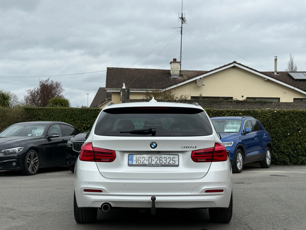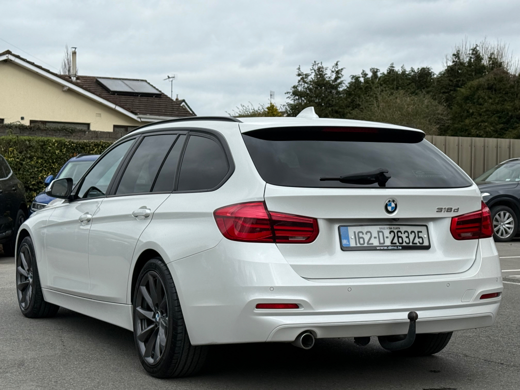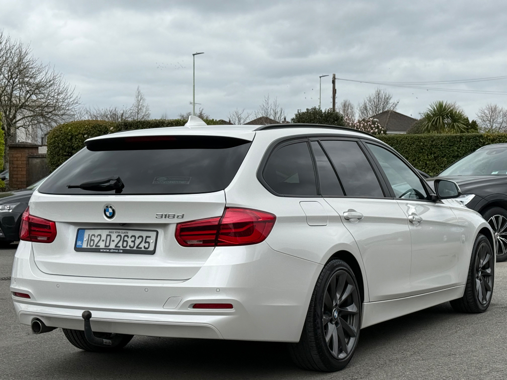 **ONLY TEN MINUTES FROM BLANCHARDSTOWN SHOPPING CENTRE** 2016 (162) BMW 318D SE auto estate in immaculate condition throughout with an excellent service record and great spec to include: upgraded alloy wheels, front foglights, electric windows & mirrors, parking sensors, full leather upholstery, sport seats, ambient lighting, sat nav, bluetooth telephone system, cruise control, media control unit, front centre armrest, sport seats, climate control with A/C, abs, isofix, esp, multiple airbags etc. For further information, please contact Adam on 01 8017777 / 083 3983490.
