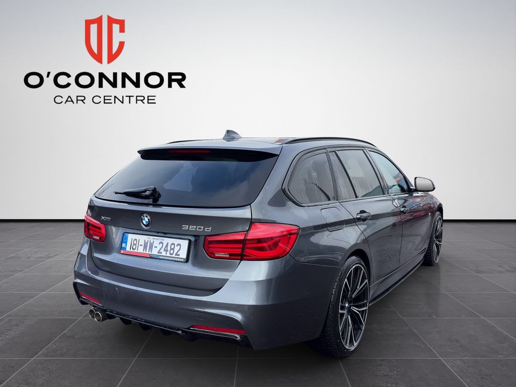 TRADE IN PRICE €26888 This 2018 BMW 320d Touring BMW F31 320d M Sport xDrive Touring finished in stylish grey is the perfect combination of sporty performance, luxury comfort and everyday practicality. Powered by BMW’s renowned 320d diesel engine paired with a smooth automatic gearbox and xDrive all-wheel drive system, this Touring delivers strong performance, excellent fuel economy and confident grip in all driving conditions — making it ideal for Irish roads all year round. The M Sport specification combined with the M Performance Kit gives this car an aggressive, sporty appearance with enhanced styling that really sets it apart on the road. Inside the cabin you’ll find premium comfort and technology including: 🔥 Heated Black Leather Seats for comfort in every season 🅿️ Parking Sensors making parking effortless ⚙️ Automatic Gearbox for smooth and relaxed driving 🏁 M Performance Kit giving the car a sporty, head-turning look The Touring estate design gives you fantastic practicality with a large boot and plenty of passenger space — perfect for family life, road trips or simply everyday usability without sacrificing style or performance. Why buy from O Connor Car Centre? All our cars are fully prepped, hand picked head turners only, and come with warranty for total peace of mind. Anti-Theft System, Central Locking, EBD, Fog Lamps, Parking Sensors, Remote Central Locking, Traction Control, Brake Assist System, Automatic Wipers, Daytime Running Lights, Hill-Start Assist