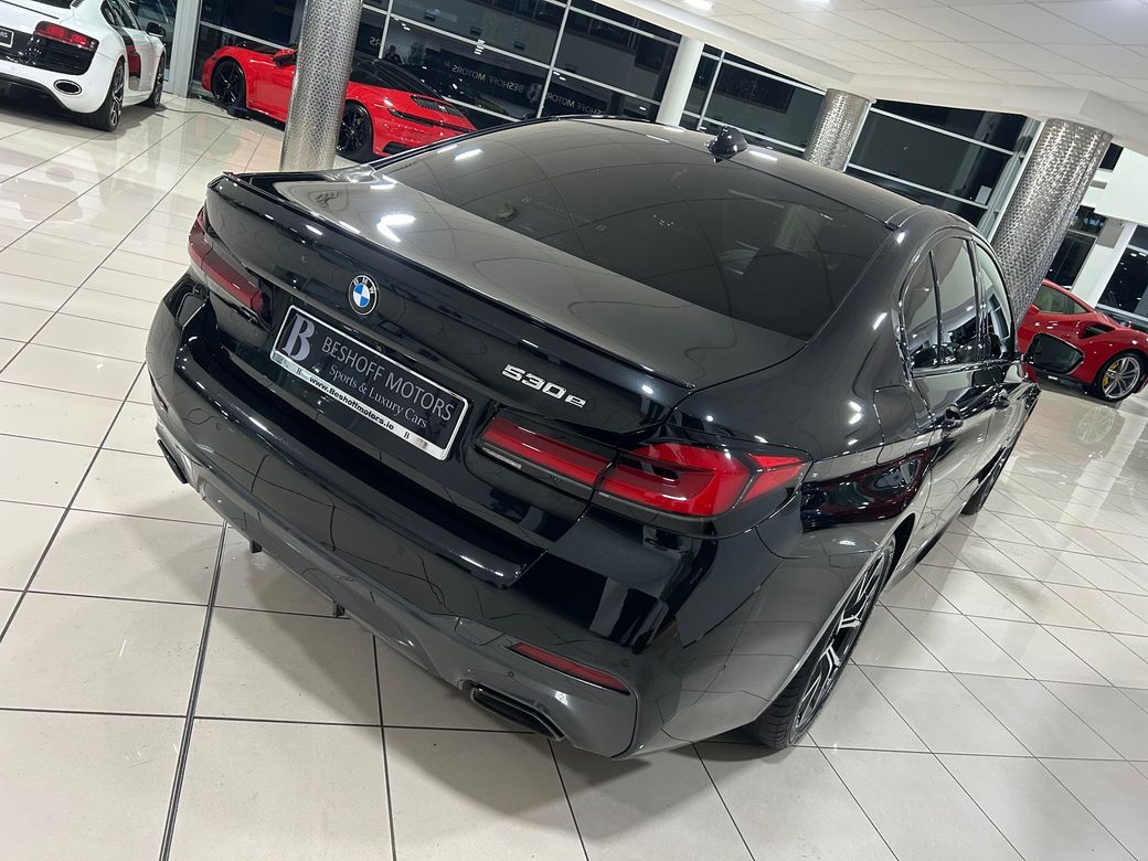 Beshoff Motors is proud to present this low mileage 2021 BMW 530e M-Sport Hybrid with only 45,000 miles from new and a full service history. Presented in Sapphire Black Metallic with a complementing Black Leather Interior with a host of features including... - M-Sport Package - 19-Inch Five Double Spoke M-Sport Alloy Wheels - Sun Protection Glass - High Gloss Shadowline Exterior Trim - LED Headlights & Daytime Running Lights - Parking Assistance System with Sensors Front and Rear - Configurable Driving Modes - Cruise Control - Heated and Partial Electric Front Sports Seats - Professional Media Package - BMW Satellite Navigation System - Voice Command - BMW Integrated Phone System - Bluetooth Connectivity - Aircon with Dual Climate Control - Leather Multifunctional Steering Wheel - Configurable Ambient Interior Lighting - Auto Lights & Wipers and much more... This is a 211 Dublin registered example presented in showroom condition that benefits from only €170 annual road tax. Welcome to Beshoff Motors where our family name has been a name in the motor trade worldwide for over 50 years. Our Dealership is a family run business that was founded by Jeremy Beshoff in 2009 who today runs the business alongside his sister Natassja. We specialise in supplying in Sports, Luxury, & Performance vehicles which are prepared to the highest standards. We spend a great amount of time and effort in keeping track with the market and ensuring the price of each of our vehicles is reflective of its rarity, specification, mileage and condition. Our business model which is reliant on turning stock quickly means that we are only interested in stocking vehicles that are priced to sell. When it comes to financing your purchase we have fantastic relationships with a variety of funders giving us privileged access to some of the best finance packages on the market. We pride ourselves on being able to offer very competitive finance rates and finding a bespoke solution to suit individual needs in order to help fund the purchase of your next car in the most cost effective manner. We have two different types of finance agreements to include Hire Purchase & Personal Contract Purchase. Though we always prefer to take in part-exchanges that we would retail here at Beshoff Motors, we are happy to consider all part-exchanges and due to our fantastic relationships with a network of dealerships we will ensure we get the very best price for your car. Come to browse our current stock in our indoor showroom’s located on the Grange Road, Baldoyle, Dublin 13 which is open 6 days a week from 9am-6pm Monday-Friday & 10am-2pm on Saturday’s. If these times don’t suit you schedule, contact our sales team to arrange a virtual or a physical out of hours appointment to suit you.. ##342531