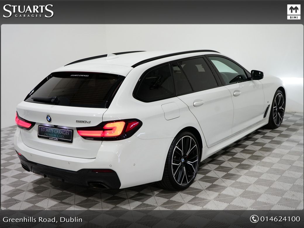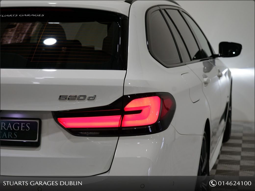 GREAT SPEC 520D TOURING, ALPINE WHITE WITH BLACK LTHR: M-SPORT PRO PACK, 20” DIAMOND CUT ALLOYS, VISIBILITY PACK 20” BI-COLOUR M-SPORT ALLOYS, INDIVIDUAL HIGH GLOSS GRILL AND SURROUNDS, SUN PROTECTION GLASS, M-SPORT SEAT BELTS, RED BREAK CALIPERS, ADAPTIVE LED HEADLIGHTS, HIGH BEAM ASSIST Buy in confidence from Irelands leading Land Rover specialist. This particular BMW 520d TOURING has been fully prepared by ourselves and comes with the balance of the manufacturer’s 3yr warranty and 12 months AA roadside Assist. Attractive finance options, including PCP, are available upon request. Call today for further information or to arrange a test drive.