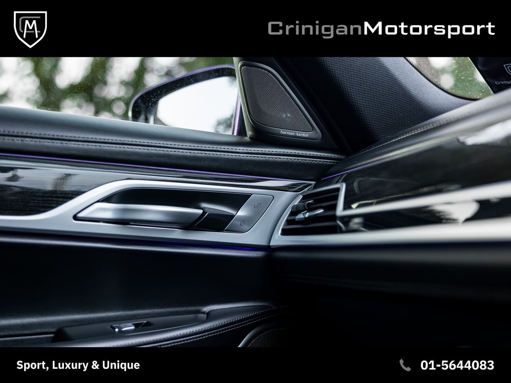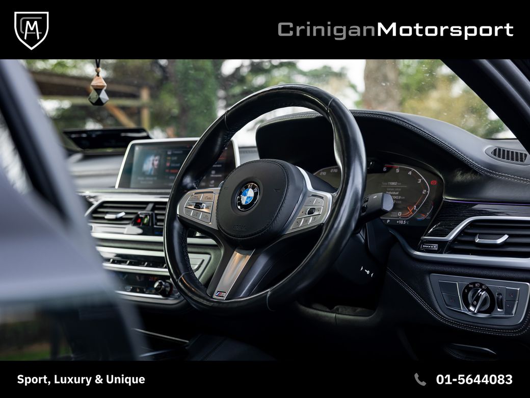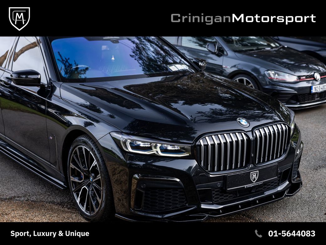 *This car has now been reserved* Previously supplied by Crinigan Motorsport 2020 BMW 740d Drive M Sport Pro, Presented in Black Sapphire Metallic with Black Nappa Leather Interior. Original Irish Car with 111kms & Documented Service History. Massive spec on this 7 Series including: - Sunroof - Laserlights - Harman Kardon Sound System - Head Up Display - Comfort Access - Soft Close Doors - Climate Comfort Windscreen - Display Key - Comfort Seats with Memory - M Stitched Seatbelts - Front & Rear Heated Seats - Park Assist Plus - Remote Control Parking - Connected Pack Pro - BMW Drive Recorder - Gesture Control - Aerodynamics Pack - WiFi Hotspot - Wireless Phone Charger - Pro Package & more Along with standard 7 Series features.