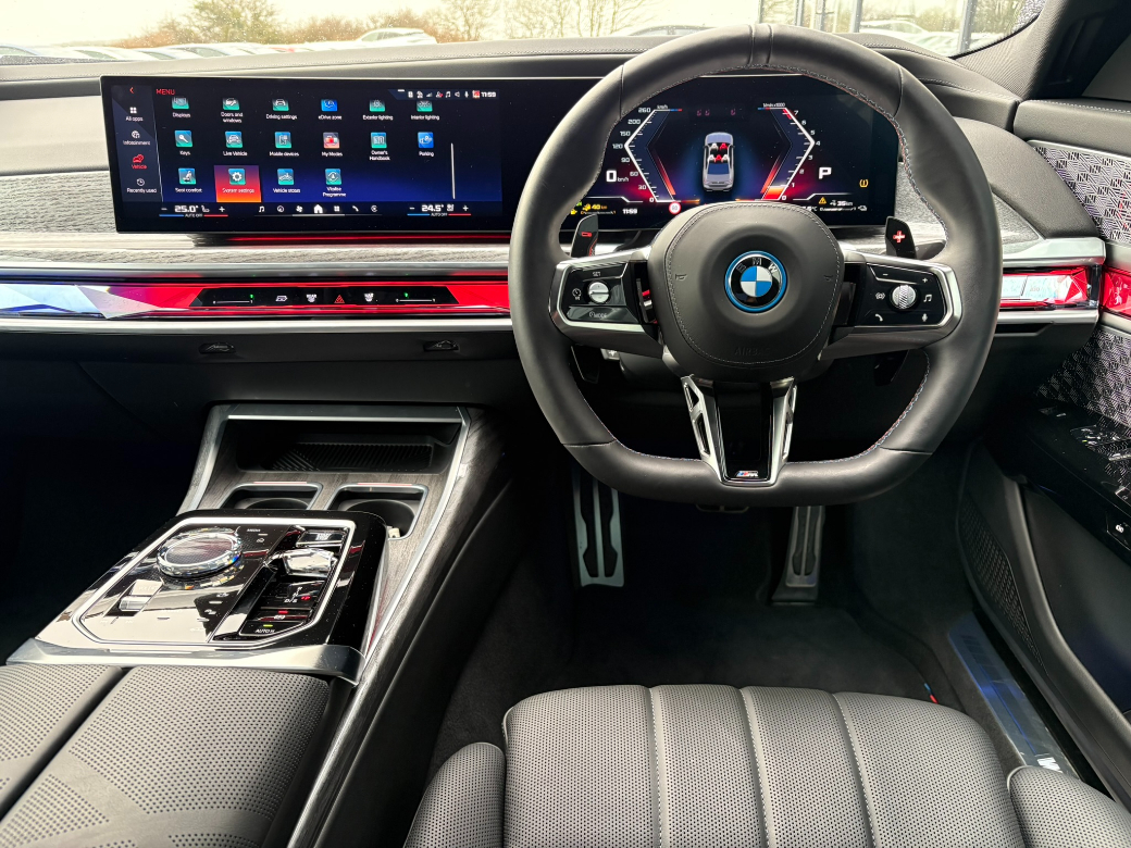 2025 (251) BMW M760e xDrive M Sport Pro in Brooklyn Grey with BMW Individual leather in Black. The M760e is a high-performance plug-in hybrid (PHEV), blending powerful M performance with electric efficiency, boasting 571 horsepower, 0-100 km/h in 4.3 seconds with and an electric range of circa 70km - 80km, offering the ultimate in comfort and technology. This example is extra special in that it is equipped with the Ultimate Package making it literally highest possible specification 7 Series possible. The Ultimate Pack includes BMW Rear Theatre Screen -- Automatic Front and Rear Doors -- Skylounge Panoramic Glass Sunroof -- Ventilated Front Seats -- Front Massage Seats -- Multifunctional Ventilated Rear Seats -- Rear Massage Seats -- Driving Assistant Pro inc Adaptive Cruise -- Parking Assistant Pro -- Bowers & Wilkins Diamond 4D Surround Sound Audio System -- Integral Active Rear Wheel Steering -- 21" 908 M Star-Spoke style alloy wheels -- Rear Side Window and Windscreen Electric Blinds -- Front and Rear Heat Comfort System -- Executive Lounge Rear Seating -- Executive Lounge Rear Console -- Executive Drive Pro -- Iconic Glow Crystal Headlights -- Sun Protection Glass -- M Sport Package Pro -- M Sport brakes with Black calipers -- Glass application 'CraftedClarity' for interior elements. Other standard features include Personal eSIM -- Connected Package Professional -- Live Cockpit Pro with Head up Display -- Remote Interior and Exterior Camera View from Smartphone -- M Sport Rear Spoiler -- Iconic Glow Kidney Grille -- Sun Protection Glass -- BMW Individual high-gloss Shadow Line with extended contents -- Anthracite Alcantara Headlining -- M Sport Leather Steering Wheel, heated -- Interior Camera -- Through Loading System -- eDrive Exterior Sound -- Wireless Phone Charging Tray -- Alarm and Security System. This car will be fully serviced prior to sale and comes complete with the balance of its manufacturers warranty to 17.03.2028 with unlimited mileage in addition to its manufacturers EV battery warranty to 17.03.2033 or 160,000km, whichever comes sooner. We accept certain makes and models in Part Exchange subject to having full service history, a current NCT test (minimum six months to expiry) and verifiable mileage. To discuss this car further and / or receive a part exchange valuation please call into our showroom, phone us on 091 383000 or send us an online enquiry -- You can also reserve this car for 48 hours on our website -- Due to fast stock turnaround we recommend phoning in advance of travelling to check if the car of your choice is available -- We are an independently owned and operated dealership and our highly experienced team have over 100 years of combined motor industry experience.