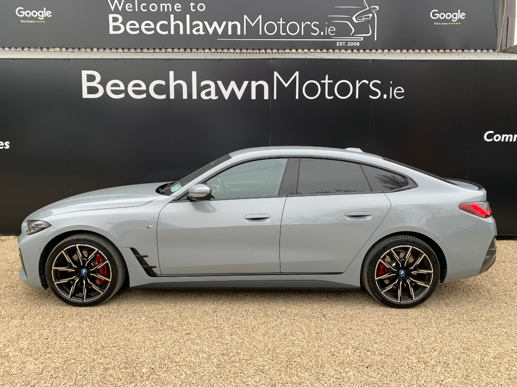 Just Arrived. This very striking 2023 BMW i4 M Sport Edrive40 Auto Electric 5DR. One previous owner. In stunning condition throughout. Anticipated range of approx. 502 to 597 km's (depending on driving styles and conditions). €120 Road Tax per Annum. Boasting an impressive 340 hp motor which accelerates 0–100 km/h / 62 mph in 5.6 seconds making it an exhilarating car to own. A dream drive with BMW reliability. It comes with a host of extras. M Sport Interior and Exterior Styling, 19" M Sport Alloy Wheels, Half Leather/Half Alcantara Seats, Heated Seats, Sat Nav, Electric Tailgate, Virtual Cockpit, Reverse Camera, Privacy Glass, Parking Assist, Muti Functional Steering Wheel, Cruise Control, Bluetooth, Auto Lights, Auto Wipers and Remote Central Locking are all standard just to list a few.............................Its supplied fully serviced, professionally valeted and with a warranty. At Beechlawn Motors Ltd we have over 18 years experience in supplying quality used vehicles. With over 100 Cars and Commercial in stock we have a vehicle to suit everyones needs. (Finance Available on a certain models). Beechlawn Motors Ltd, Unit GA1, Sitecast Industrial Estate, Greenhills Road, Dublin 24, D24 YE2K. Opening hours Monday - Friday 8.00 - 17.00. Saturday 10.00 - 14.00. Closed Sunday. After hours by appointment only. 01-4508514 or 086-8393233.