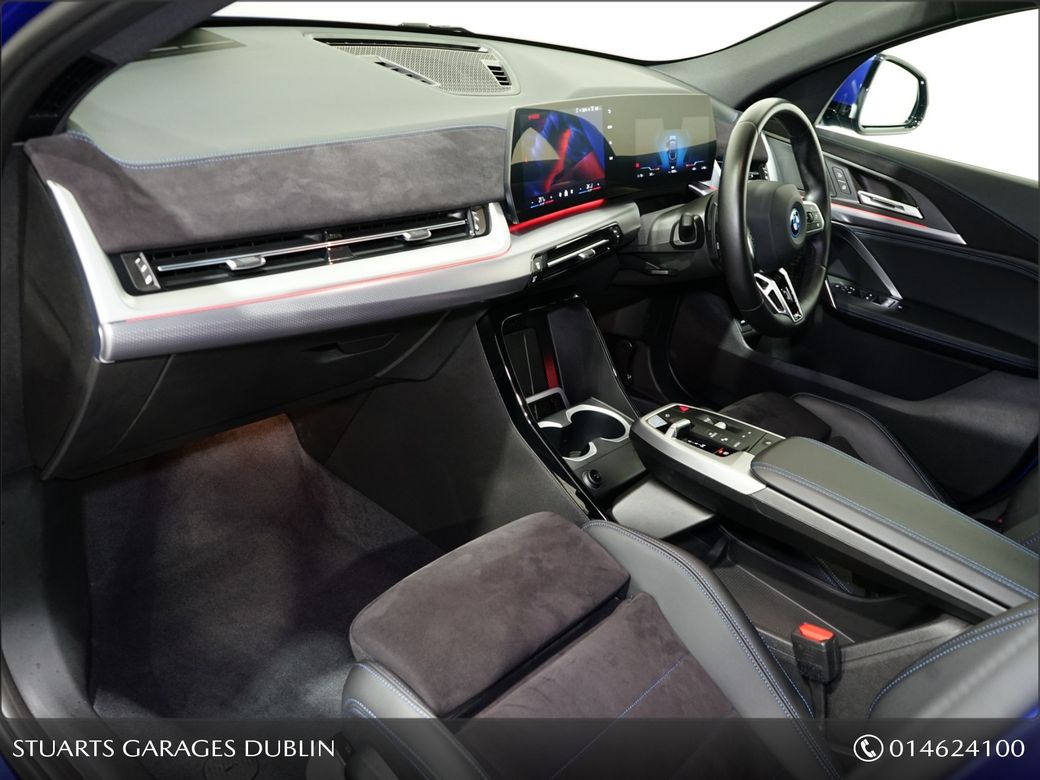 IX2 M-SPORT eDRIVE20 M-SPORT PRO: PORTIMAO WITH LEATHER AND ALCANTARA INTERIOR, COMFORT ACCESS, HEATED SEATS, FOLDING MIRRORS, PARKING ASSISTANT, IX2 M-SPORT eDRIVE20 M-SPORT PRO • PORTIMAO BLUE METALLIC • LEATHER AND ALCANTARA INTERIOR • COMFORT ACCESS • HEATED SEATS • FOLDING MIRRORS • PARKING ASSISTANT • ACOUSTIC COMFORT GLAZING • SUN PROTECTION GLAZING • ADAPTIVE LED HEADLIGHTS with HIGH BEAM ASSIST • WIRELESS CHARGING TRAY • ANDROID AUTO AND APPLE CARPLAY • REAR CAMERA • 64KW BATTERY 420KM MANUFACTURER CLAIMED RANGE • DON’T MISS OUT ON THIS INCREDIBLE VALUE IX2 EDRIVE20 • At Stuarts Garages, we specialise in High Quality Premium Pre-Owned Cars. • This BMW IX2 M-SPORT comes with the balance of the manufacturer’s warranty • 12 months AA Roadside Assist. • Attractive finance options, including PCP are available upon request. • Call today for further information or to arrange a test drive. • Stuart’s Garages, Trading since 1946.