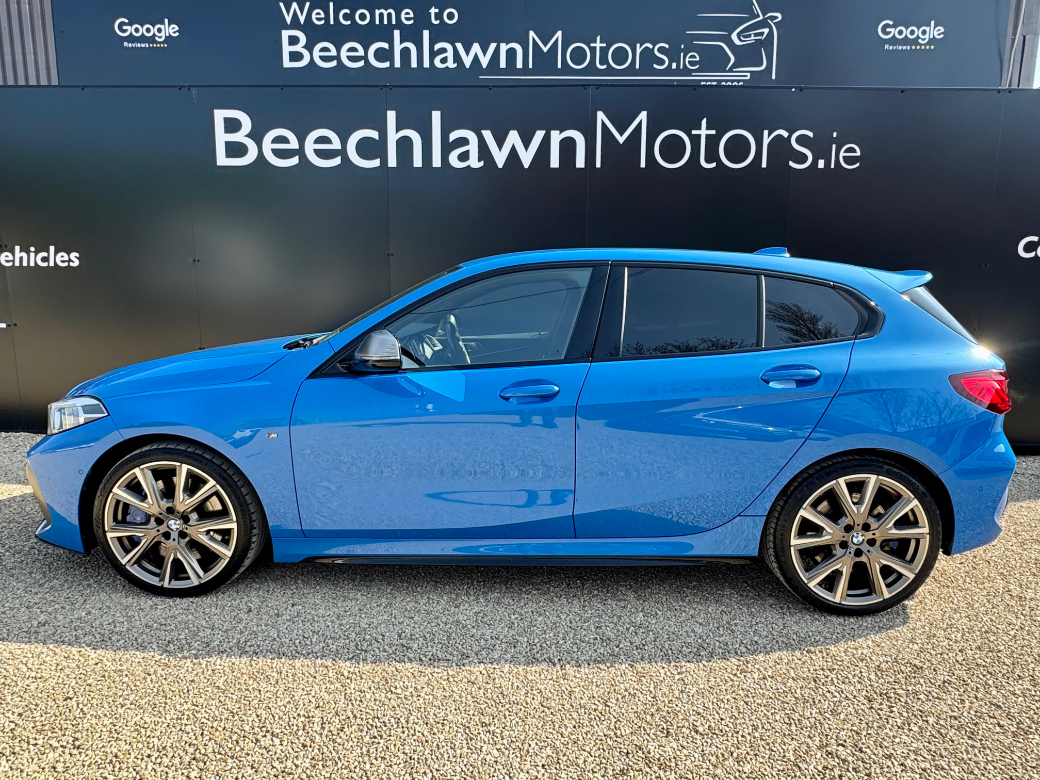 Just Arrived. This very striking Misano Blue 2020 BMW M135i xDrive Auto 306 BHP with M135i Plus Pack (19-inch alloy wheels, Adaptive M Suspension, M Seat Belts, Sun Protection Glass and extended High-gloss Shadowline Exterior Trim), Technology Pack 1 (Adaptive LED Headlights, Comfort Access, Wireless phone charging, Upgraded Parking Assistants and Head-Up Display) and a Ghost Immobiliser. A one owner Irish car from new. Full BMW Service History apart from one service which was carried out by a BMW specialist. 02/28 NCT and 08/26 Tax. In stunning condition throughout. A great alternative Golf R or S3 but not as common. A dream to drive with BMW build quality. 0–100 km/h in 4.8 seconds and a top speed of 250 km/h makes it an exhilarating car to drive. No expense was spared. Virtually new Continental Premium Contact 6 tyres and recently serviced including enhanced brake pads. It also received a gearbox service. Don't miss this very rare opportunity to own an original Irish M135i. 19" Alloy Wheels, Sports Alcantara Seats, Ghost Immobiliser, Heated Seats, Heads Up Display, Privacy Glass, Cruise Control, Sat Nav, Apple CarPlay/Android Auto, Wireless Phone Charging, Adaptive M Suspension, Reverse Camera, Harmon/Kardon Audio, Multi Functional Steering Wheel and Parking Assist are all standard just to list a few......................................Its supplied fully serviced, professionally valeted and with a warranty. At Beechlawn Motors Ltd we have over 18 years experience in supplying quality used vehicles. With over 100 Cars and Commercial in stock we have a vehicle to suit everyones needs. (Finance Available on a certain models). Beechlawn Motors Ltd, Unit GA1, Sitecast Industrial Estate, Greenhills Road, Dublin 24, D24 YE2K. Opening hours Monday - Friday 8.00 - 17.00. Saturday 10.00 - 14.00. Closed Sunday. After hours by appointment only. 01-4508514 or 086-8393233.