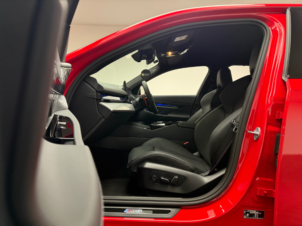 This 2025 / 252 BMW M5 finished in Rosso Corsa with a full black Merino leather interior, comes equipped with: - BMW Service Package - 20/21" 951 M Light Black Alloy Wheels - Rosso Corsa Individual BMW Paint - Bowers & Wilkins Surround Sound System - Alcantara Headlining - M Exterior Carbon Package - Carbon Roof - Carbon Wing Mirrors - Comfort Package - Driving Assistant Professional - Parking Assistance System Plus - Interior Camera - M Multifunction Seats - 4 Zone Climate Control - Climate Controlled Seats (heated & ventilated) - Front & Rear Heated Seats - BMW Iconic Glow Grille - M Lights Shadow Line - M Drive Professional - Heated Steering Wheel - Wireless Charger - Comfort Access - Trailer Coupling (towing hitch) & Much More! Viewing is by appointment only. Trade ins are welcome. All vehicles come with a MotorCheck comprehensive car check. Competitive finance options available. Extended warranty is available. Please contact us on (01) 727 0489 or WhatsApp at 087 680 8666. Follow us on Facebook & Instagram @ MotorCorp! All UK registered vehicles will be delivered with a ROI registration number & ROI registration plates, the total VRT amount is included in the advertised price. While we aim to provide accurate and up-to-date specifications for the vehicle above, please be advised that they are based on our best understanding and available information. To ensure they meet your expectations, we recommend verifying and confirming the specifications during your viewing. Your satisfaction is our priority, so feel free to contact us with any questions or for more information. MDE 4272 162. Alarm, Anti-Theft System, Multiple Air Bags, Parking Sensors, Rain Sensors, Remote Central Locking, Traction Control, Brake Assist System, Adaptive Cruise Control, Automatic Lights, Automatic Wipers, Daytime Running Lights, Hill-Start Assist, Lane Departure Warning, Lane Keeping Assistance, Manufacturer's Warranty, Parking Assistance, Reversing Camera, LED Intelligent Headlights, 360 Deg Cameras, Driver Assistance Pack, Full Service History, Stability Control