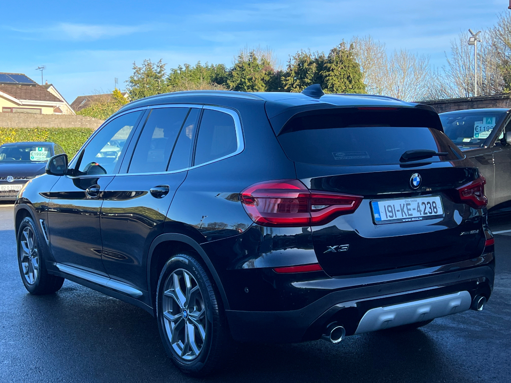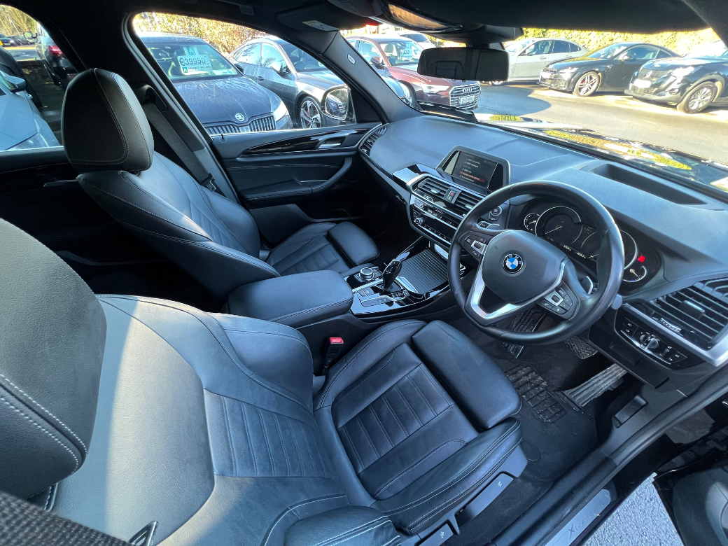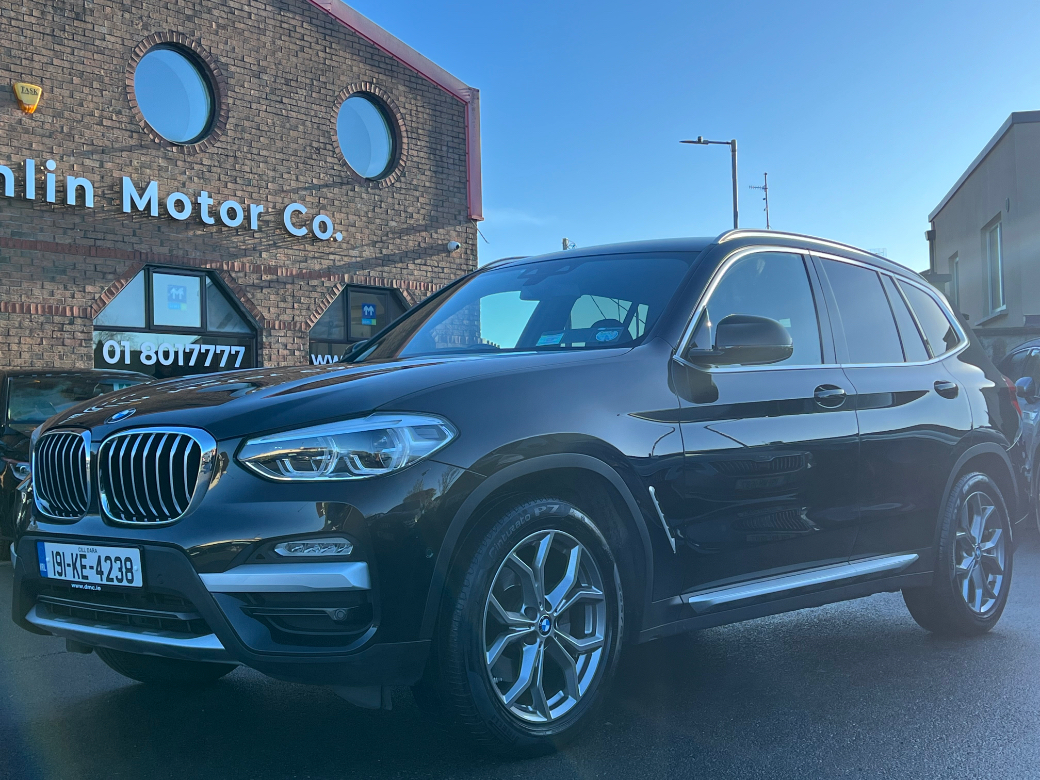 **ONLY TEN MINUTES FROM BLANCHARDSTOWN SHOPPING CENTRE** 2019 New Model BMW X3 20D X-Line Auto in excellent condition throughout with an excellent service record, low kms and huge spec to include: upgraded alloy wheels, xenon headlights, front foglights, keyless entry & start, heads up display, electric windows & mirrors, folding mirrors, parking sensors, full leather upholstery, electric & heated front seats, ambient lighting, bluetooth telephone system, aluminium dash inlays, cruise control, media control unit, front centre armrest, sport seats, climate control with A/C, leather multifunction sport steering wheel, abs, isofix, esp, multiple airbags etc. For further information, please contact Barry on 01 8017777 / 086 3358879.