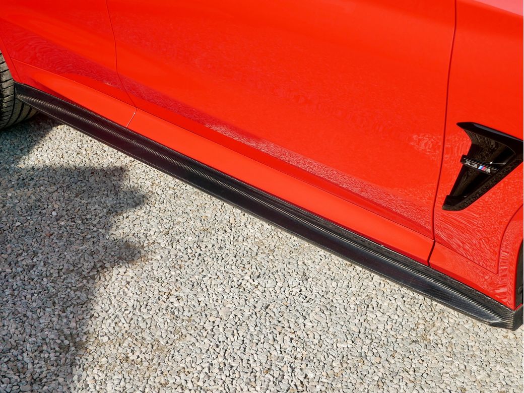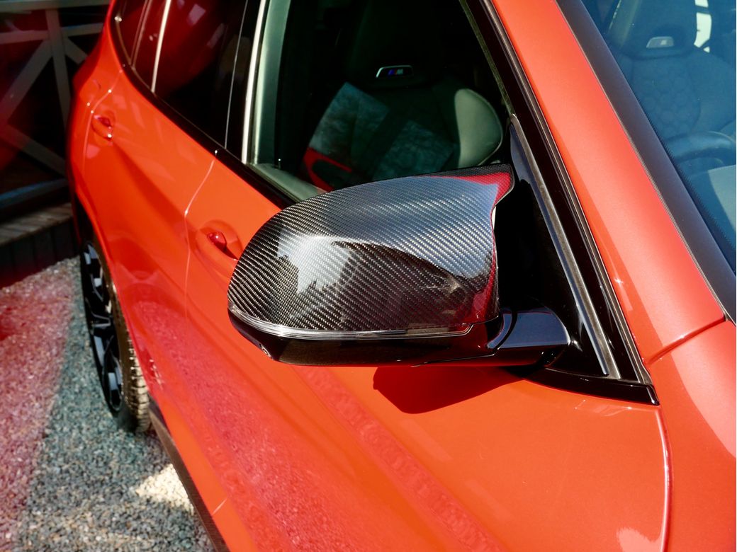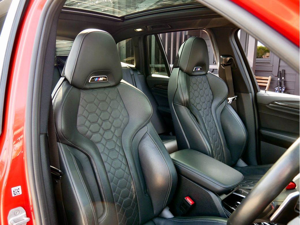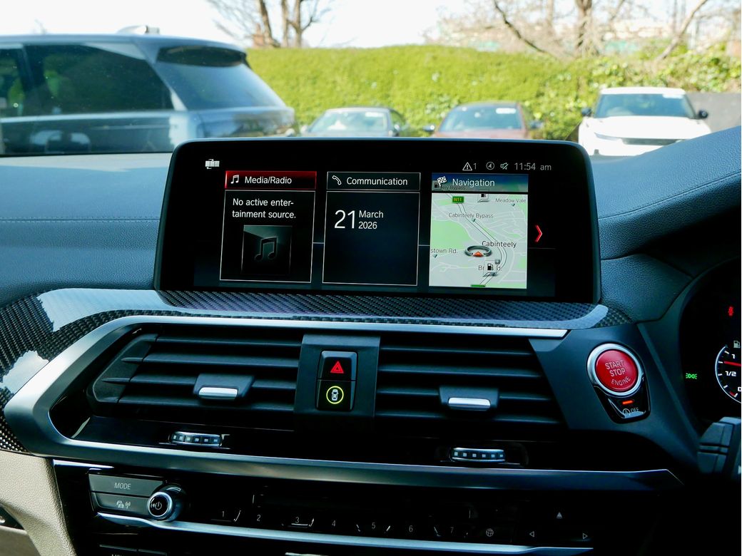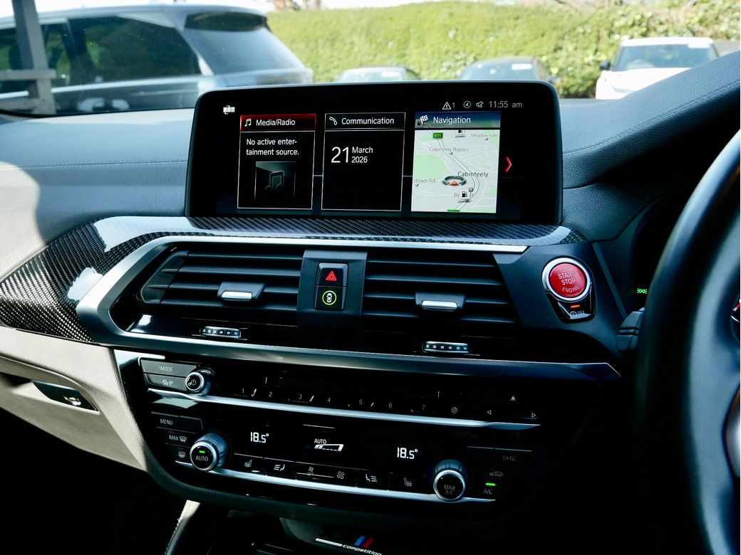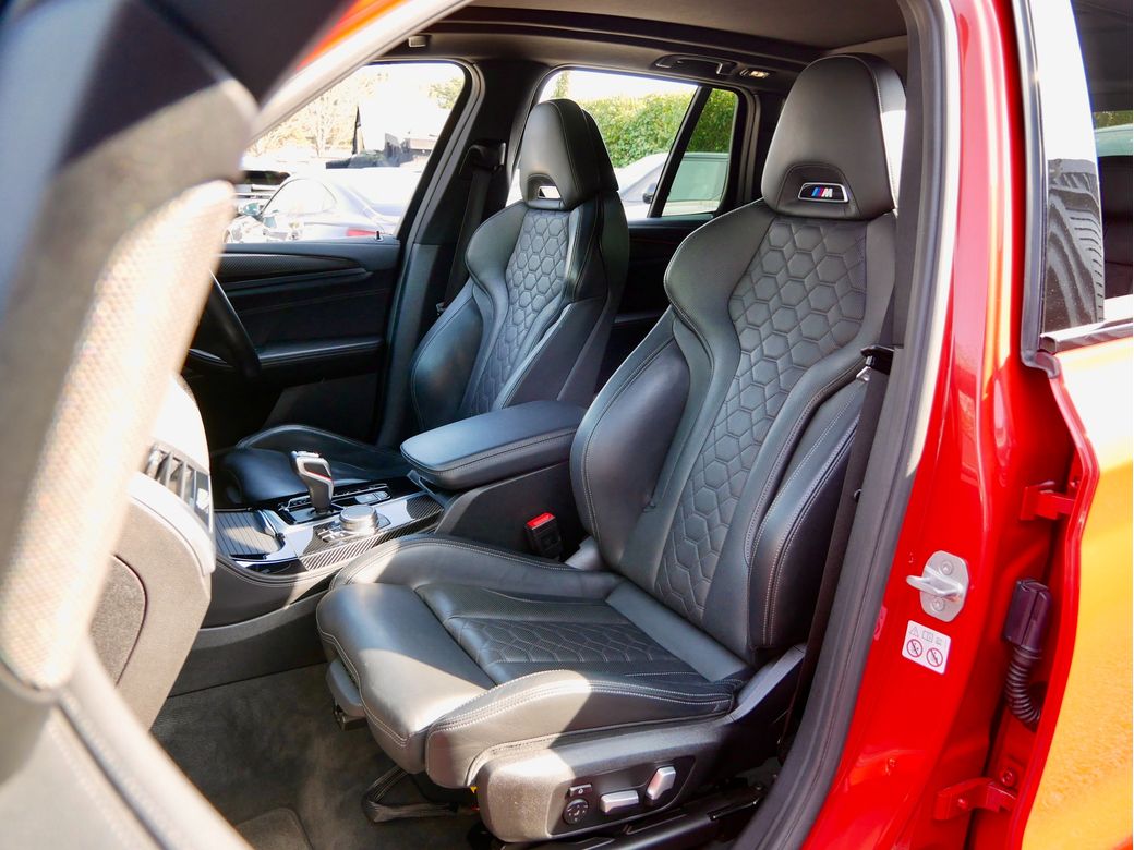 2020 registered BMW X3M Competition is now in stock Presented in Toronto Red and powered by a turbocharged 3.0l S58 petrol engine which sends 510BHP to all 4 wheels via an 8 speed automatic transmission and M X-Drive all wheel drive system Joining this is a host of features which include Style 765M alloy wheels Black Merino leather interior Harman Kardon sound system 360 camera Gesture control Satellite Navigation professional Heated steering wheel Parking assistance system plus Panoramic glass sunroof Driving assistant plus Head Up Display M Sport seats with Carbon seat back covers Connected driver services Comfort access Acoustic comfort glazing Adaptive cruise control Electric tailgate Carbon Fibre exterior trim Apple CarPlay Sun protection glazing High gloss shaodwline trim M Competition package Wireless charging Adaptive LED headlight Lumbar support Carbon fibre trim Heated seats front and rear Tyre pressure monitoring system M Sports exhaust BMW display key.