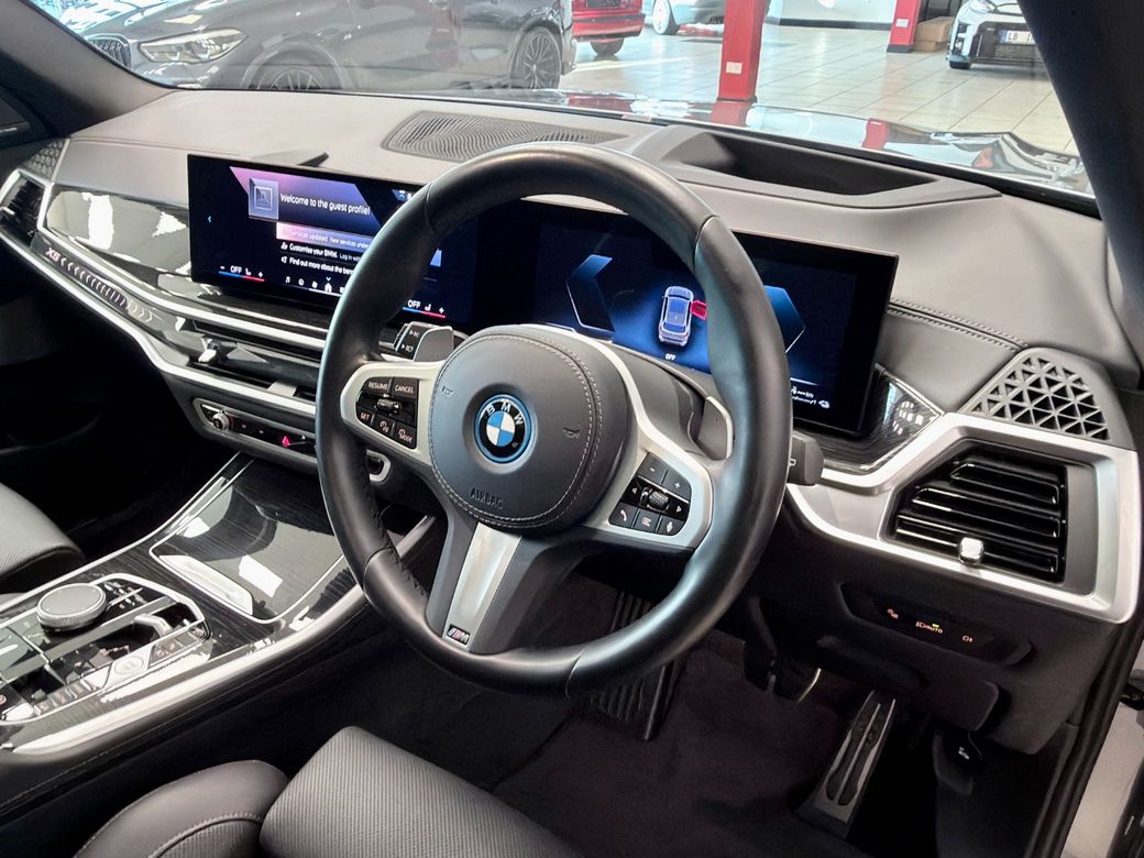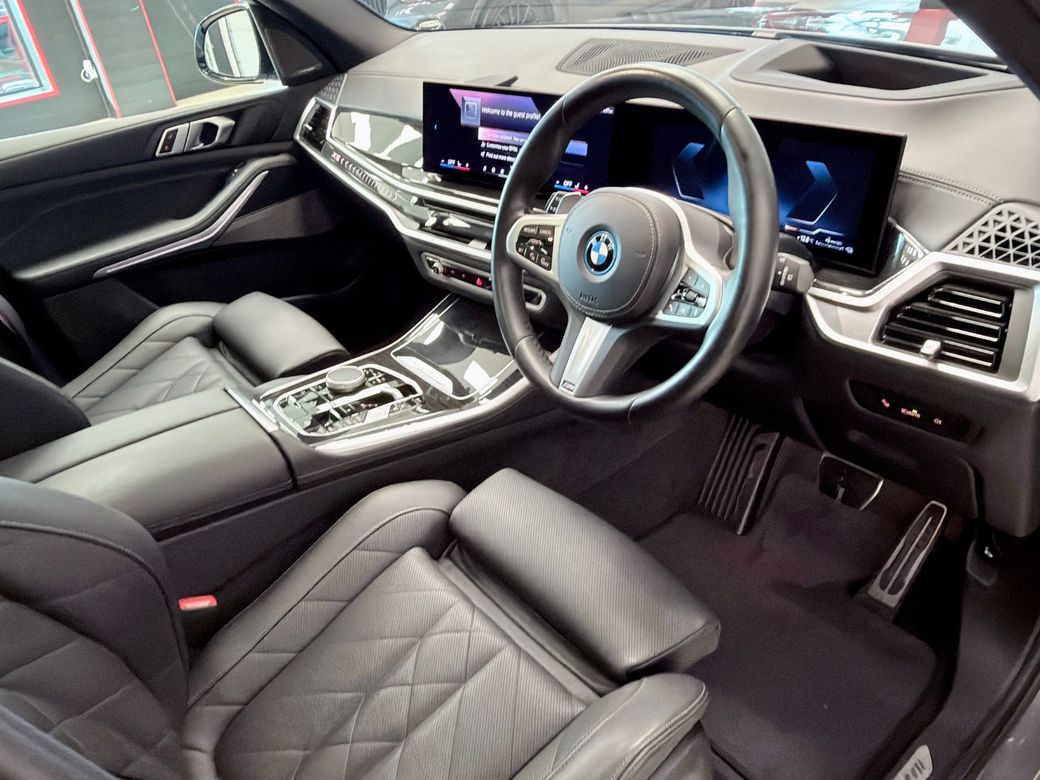 BMW X5 50E MSPORT PRO 2024 with 84k kms Skyscraper grey with sensafin black leather Spec includes: • Pro pack • Tech Pack • Sky lounge panoramic sunroof • Harmon Kardon sound system • Head up display • Blue msport brakes • 22” 742m wheels • Comfort access • Gesture control • 2 axle air suspension • Iconic glow • Shadowline lights • Automatic high beam assist • Wireless charging • Connected drive • Mperformance kit Price: €84,950 Finance available.