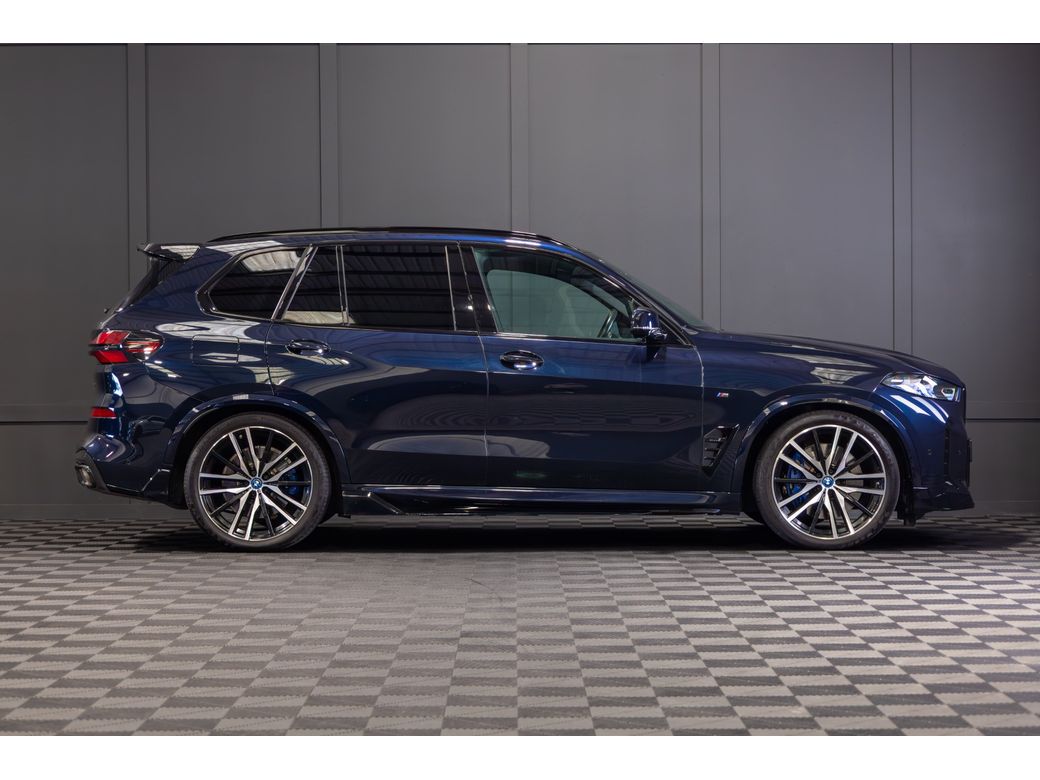 2024 (241) BMW X5 X-Drive 50e M-Sport 25.7kWh Battery with an Electric-Only Range of up to 82km Finished in Carbon Black Metallic with Black Leather Interior - 22" Gloss Black Alloy Wheels - Gloss Black Kit - Adaptive Air Suspension - Keyless Entry - Harman Kardon Surround Sound System - Heads Up Display - Heated, Electric, Folding Mirrors - Heated, Electric Front Seats with Lumbar Support - Memory Driver Seat - Leather Multifunctional Steering Wheel with Paddle Shift - Electrically Adjustable Steering Column - Adaptive Cruise Control - Lane Keeping Assist - Virtual Cockpit - Wide Touchscreen Infotainment System - Touchpad - Satellite Navigation - Bluetooth & USB Connectivity - Apple CarPlay & Android Auto - Wireless Phone Charging - Reverse Camera - Front & Rear Parking Sensors - Air Conditioning - Dual Zone Climate Control - Selectable Drive Mode - Hill Descent Control - Electronic Handbrake - Auto Hold - Privacy Glass - Colour Changing Ambient Interior Lighting - Auto Lights - LED Headlights - LED Daytime Running Lights - LED Tail Lights - High Beam Assistant - Auto Wipers - Powered Upper & Lower Tailgate - Luggage Compartment Cover - Folding Rear Seats - Isofix - Statutory Emergency Call System Manufacturers Warranty Until March 2027 Finance available Trade ins are considered Indoor viewing in Naas, Co. Kildare Call Aaron on 087-0356815 or Bob on 087-3855810 for more information or to arrange a test drive.