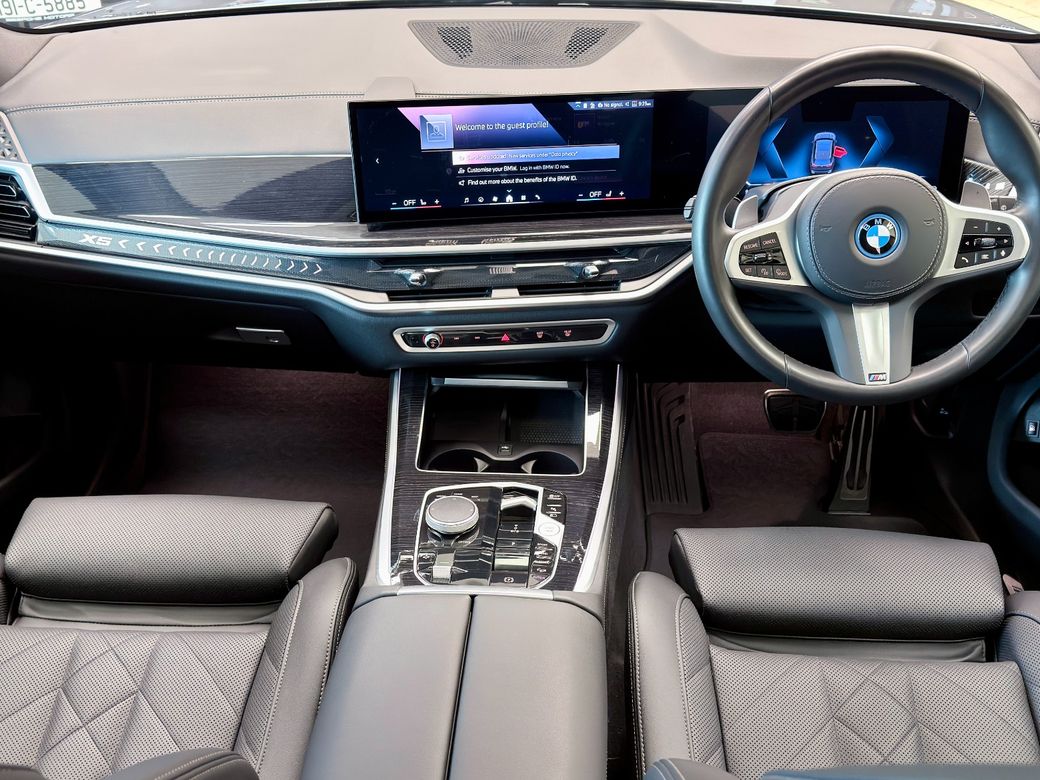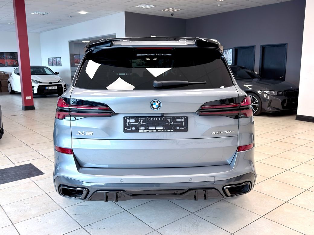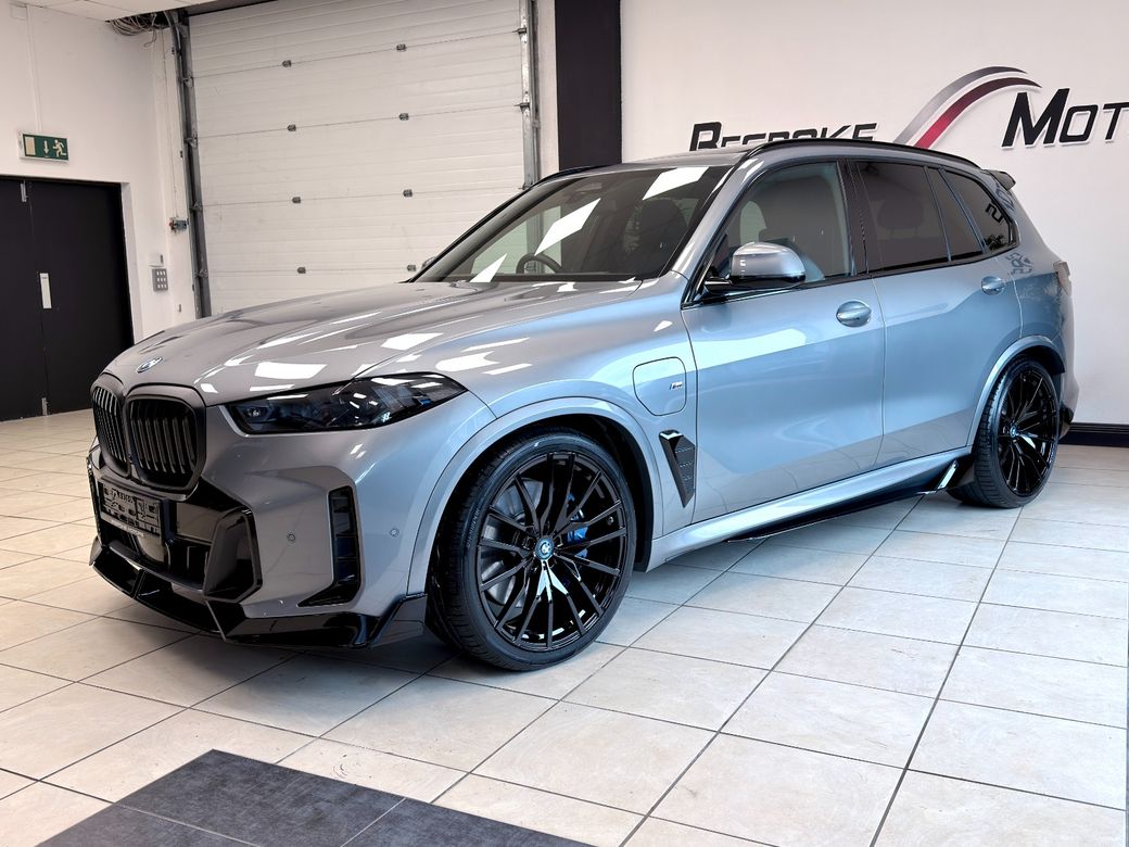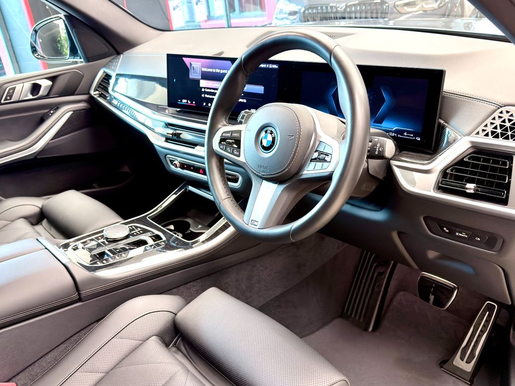BMW X5 50E MSPORT PRO 2025 with 22k miles Skyscraper grey with sensafin black leather Spec includes: • Pro pack • Sky lounge panoramic sunroof • Blue msport brakes • 22” 742m wheels • Comfort access • 2 axle air suspension • Iconic glow • Shadowline lights • Automatic high beam assist • Wireless charging • Connected drive • Mperformance kit Finance available Viewing by appointment.