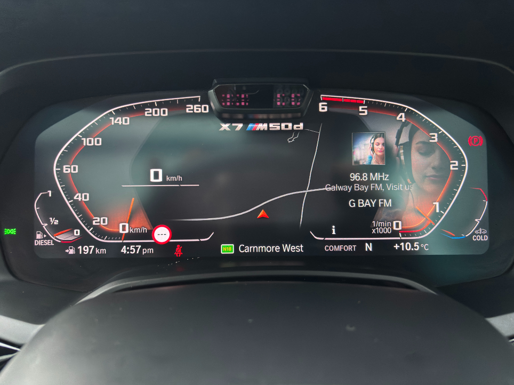 2021 BMW X7 M50d xDrive M Sport in Black Sapphire metallic with Merino Nappa Leather in Ivory White complimented by Interior strips in black piano lacquer. This X7 in M50d guise is a high‑performance, full‑size luxury SUV powered by a 3.0‑litre quad‑turbo inline‑six diesel engine delivering 400 bhp and 760 Nm of torque. Designed as the sportiest diesel variant of the X7 lineup, it combines seven‑seat practicality, premium comfort and impressive efficiency for its class. Its quad‑turbo B57 engine is a technical highlight, known for smooth power delivery and substantial mid‑range torque. With just two owners from new (BMW dealer plus one private owner) comes with a full and complete BMW service history and represents unbeatable value for money simply due to its higher than average mileage. Fitted with almost every possible optional extra this X7's specification includes Driving assistant professional -- Parking assistance system Plus -- BMW Drive Recorder -- Sky Lounge panoramic glass sunroof -- M Aerodynamics package -- M sports exhaust system -- M Sport brakes -- M Sport differential -- 22-inch V-spoke 755M wheels -- BMW LaserLights -- High-beam assistant -- Head-up display -- Soft-Close-Automatic doors -- Comfort front seats with memory -- Comfort access -- Sun protection glazing -- Glass application Crafted Clarity -- Seat heating, front and rear -- Harman/Kardon surround sound system -- Telephone wireless charging -- BMW gesture control -- M leather steering wheel -- BMW display key -- Travel & Comfort rail system -- Individual leather-covered dashboard -- Ambient interior lights -- Trailer coupling -- Full Alarm system. This car will be fully serviced prior to sale and comes complete with a 12 months / 20,000km warranty with 12 Months AA Premium Assistance. To discuss this car further please call into our showroom, phone us on 091 383000 or send us an online enquiry -- You can also reserve this car for 48 hours on our website -- Due to fast stock turnaround we recommend phoning in advance of travelling to check if the car of your choice is available -- We are an independently owned and operated dealership and our highly experienced team have over 100 years of combined motor industry experience.