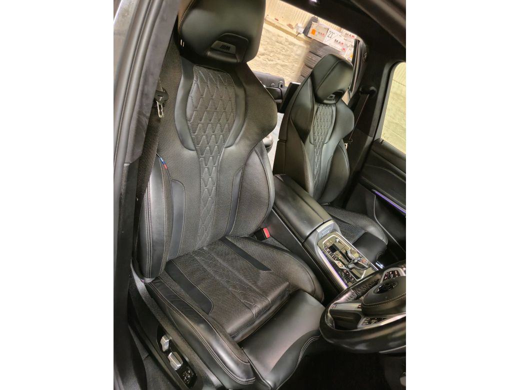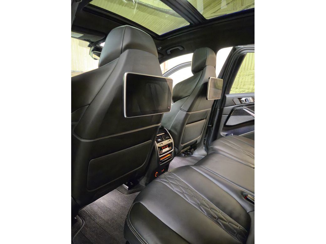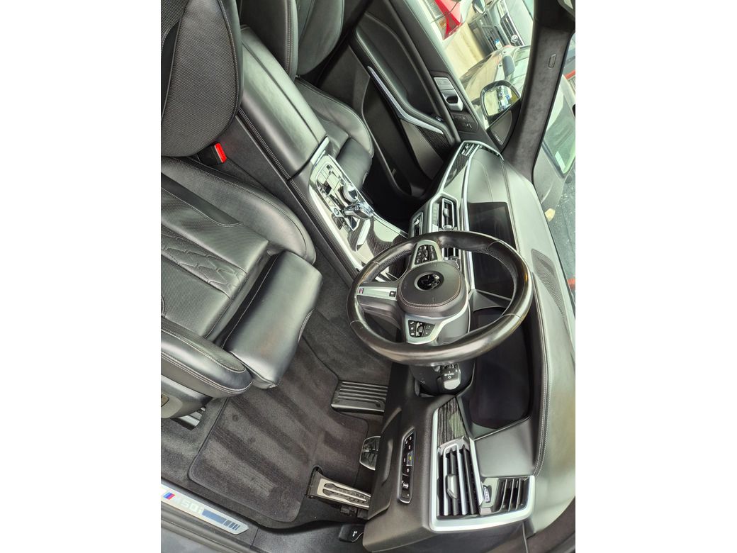 m50i 4.4 v8 530hp Xdrive Dravit grey metallic, M performance bodykit, strom 23"x10.5 str4 wheels finished in gloss black, Adjustable air suspension Extended manufactures warranty until 2027 One of a kind SUV not to be missed some of the extensive factory options on this vehicle are listed below: S710 M leather steering wheel S715 M Aerodynamics package S7M9 M Shadow Line with expanded scope S407 Sky Lounge panoramic glass sunroof S417 Roller sun visor, rear door S420 Sun protection glazing S423 Floor mats velour S44A Cup holder temperature-adjustable S453 Climate-controlled seats, front S4A2 Glass application Crafted Clarity S4GQ M seat belts S4HA Seat heating, front and rear S4HB Heat comfort package, front S4LM Fine wood Fineline high gl. metal effect S4M5 Individual leather-covered dashboard S4MA M multifunction seat S4NM Ambient Air Paket S4NN Automatic A/C with 5-zone control S4T7 Massage function f.driver & fr.passenger S4UR Ambient interior light S60A TV function Plus S610 Head-up display S654 DAB tuner S688 Harman/Kardon surround sound system S6AE Teleservices S6AF Statutory emergency call S6AK Connected Drive Services S6C4 Connected Package Professional S6DR BMW Drive Recorder S6FH Rear-cabin entertainment, Professional S6U3 BMW Live operating area Professional S6U8 BMW gesture control S5A1 LED Fog lights S5AC High-beam assistant S5AL Active Protection S5AQ Active guard plus S5AZ BMW Laserlicht S5DF Active cruise control+stop&go function S5DN Parking assistance system Plus S230 EU-specific additional contents S258 Tyres with run flat properties S2NH M Sport brake S2PA Locking wheel bolt S2T4 M Sport differential S2TB Sport automatic gearbox S2VB Tyre pressure display S302 Alarm system S322 Comfort access S323 Soft-Close-Automatic doors S3MC M roof railing, Shadow Line S8TF Active pedestrian protection S760 High gloss shadow line S776 Roof liner Alcantara anthracite S1MA M sports exhaust system SC36 Dravitgrau metallic SVASW Leather Merino black. Anti-Theft System, Central Locking, EBD, Fog Lamps, Parking Sensors, Traction Control, Brake Assist System, Adaptive Cruise Control, Automatic Wipers, Daytime Running Lights, Hill-Start Assist, Lane Keeping Assistance, Manufacturer's Warranty, Reversing Camera, LED Intelligent Headlights
