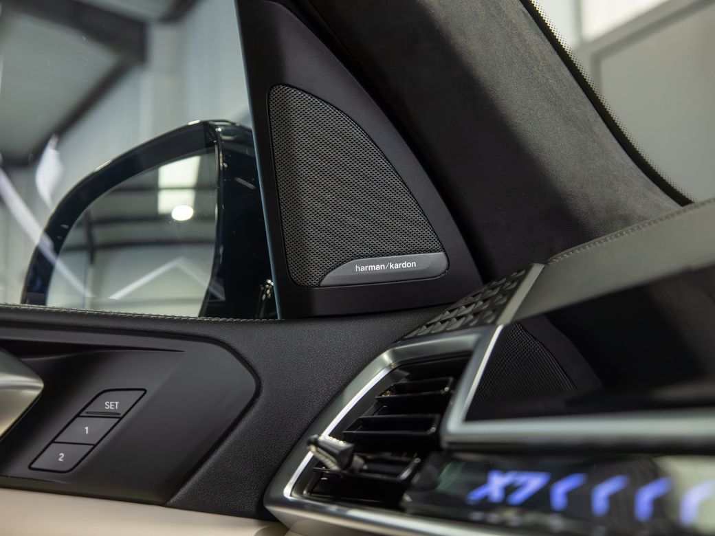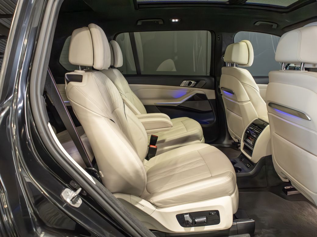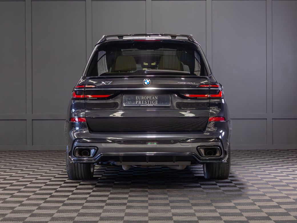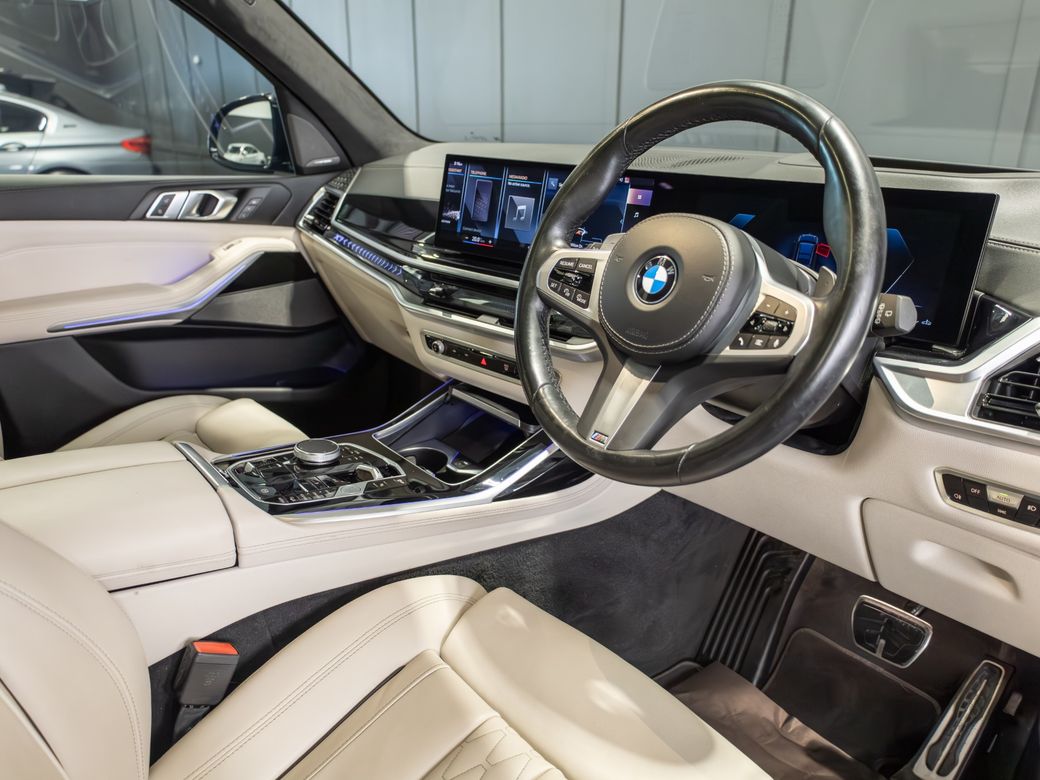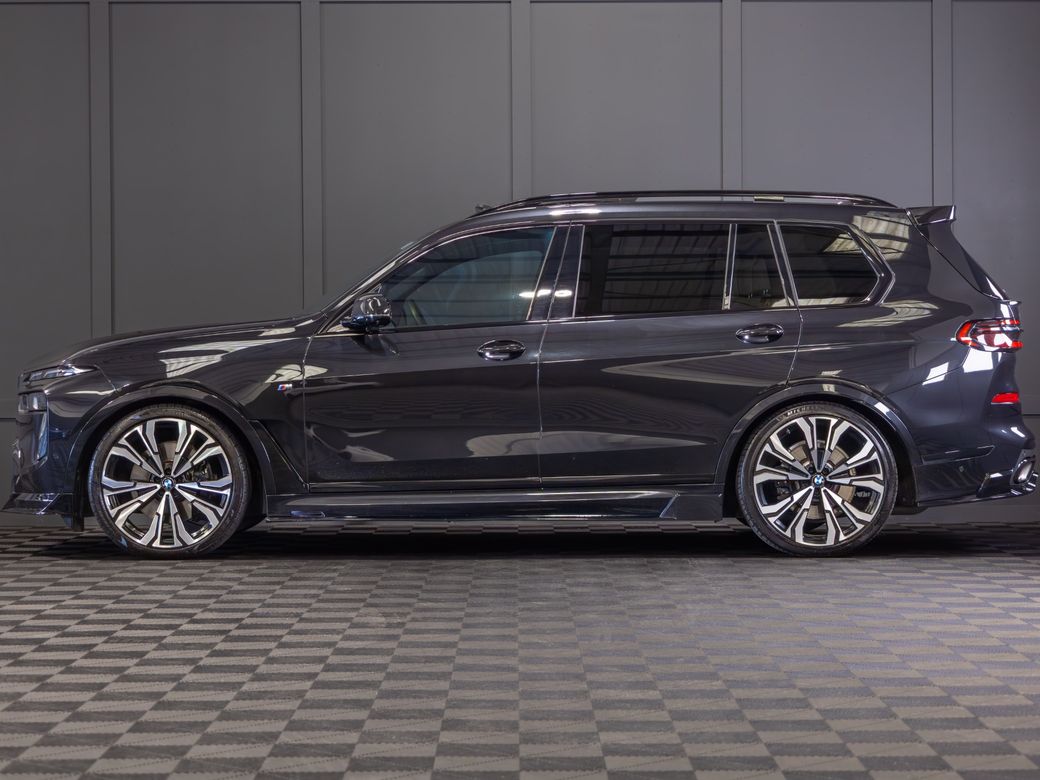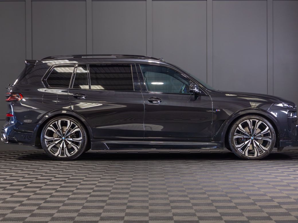 2022 (222) BMW X7 X-Drive 40d M-Sport *Pan Roof Finished in Black Sapphire Metallic with Ivory Merino Leather Interior - 23” Alloy Wheels - Gloss Black Kit - M-Sport Package Pro - Adaptive Air Suspension - Keyless Entry - Soft Close Doors - Sky Lounge Panoramic Glass Roof - Harman Kardon Surround Sound System - Heads Up Display - Heated, Electric, Folding Mirrors - Heated, Electric, Memory Front Seats with Lumbar Support - Leather Multifunctional Steering Wheel with Paddle Shift - Electrically Adjustable Steering Column - Cruise Control - Virtual Cockpit - Wide Touchscreen Infotainment System - Gesture Control - Touchpad - Satellite Navigation - Bluetooth & USB Connectivity - Apple CarPlay & Android Auto - Wireless Phone Charging - 360 Cameras - Front & Rear Parking Sensors - Air Conditioning - Dual Zone Climate Control - Selectable Drive Mode - Hill Descent Control - Electronic Handbrake - Auto Hold - Auto Stop/Start Function - Privacy Glass - Colour Changing Ambient Interior Lighting - Auto Lights - LED Headlights - LED Daytime Running Lights - LED Tail Lights - High Beam Assistant - Auto Wipers - Powered Upper & Lower Tailgate - Luggage Compartment Cover - Folding Rear Seats - Isofix - Statutory Emergency Call System Warranty inclusive (options for extended warranty available) Finance available Trade ins are considered Indoor viewing in Naas, Co. Kildare Call Aaron on 087-0356815 or Bob on 087-3855810 for more information or to arrange a test drive.