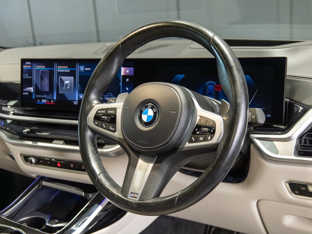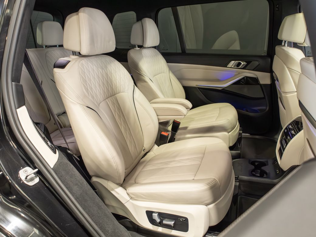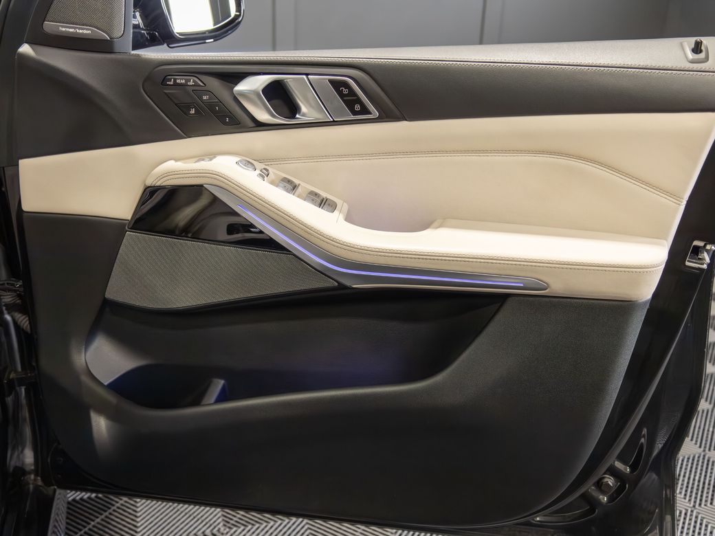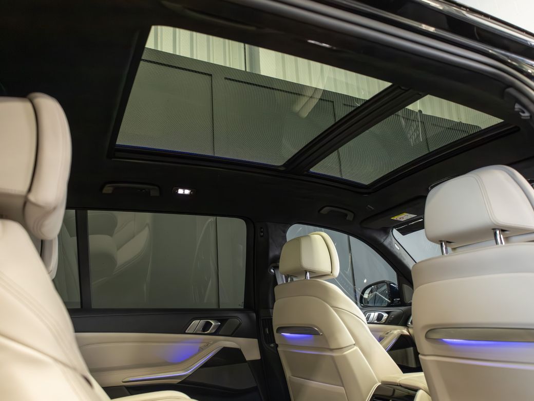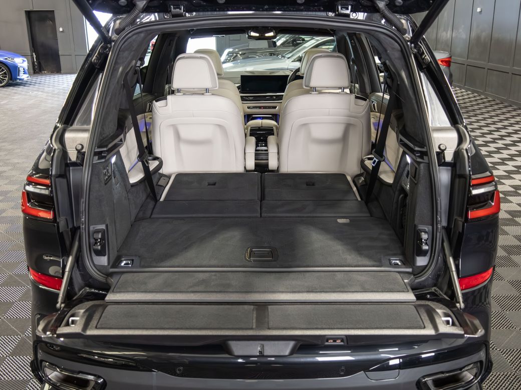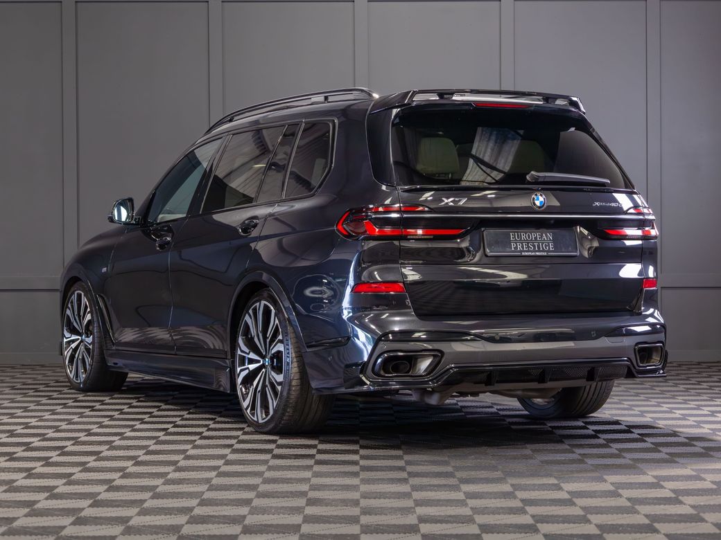 2022 (222) BMW X7 X-Drive 40d M-Sport *Pan Roof Finished in Black Sapphire Metallic with Ivory Merino Leather Interior - 23” Alloy Wheels - Gloss Black Kit - M-Sport Package Pro - Adaptive Air Suspension - Keyless Entry - Soft Close Doors - Sky Lounge Panoramic Glass Roof - Harman Kardon Surround Sound System - Heads Up Display - Heated, Electric, Folding Mirrors - Heated, Electric, Memory Front Seats with Lumbar Support - Leather Multifunctional Steering Wheel with Paddle Shift - Electrically Adjustable Steering Column - Cruise Control - Virtual Cockpit - Wide Touchscreen Infotainment System - Gesture Control - Touchpad - Satellite Navigation - Bluetooth & USB Connectivity - Apple CarPlay & Android Auto - Wireless Phone Charging - 360 Cameras - Front & Rear Parking Sensors - Air Conditioning - Dual Zone Climate Control - Selectable Drive Mode - Hill Descent Control - Electronic Handbrake - Auto Hold - Auto Stop/Start Function - Privacy Glass - Colour Changing Ambient Interior Lighting - Auto Lights - LED Headlights - LED Daytime Running Lights - LED Tail Lights - High Beam Assistant - Auto Wipers - Powered Upper & Lower Tailgate - Luggage Compartment Cover - Folding Rear Seats - Isofix - Statutory Emergency Call System Warranty inclusive (options for extended warranty available) Finance available Trade ins are considered Indoor viewing in Naas, Co. Kildare Call Aaron on 087-0356815 or Bob on 087-3855810 for more information or to arrange a test drive.