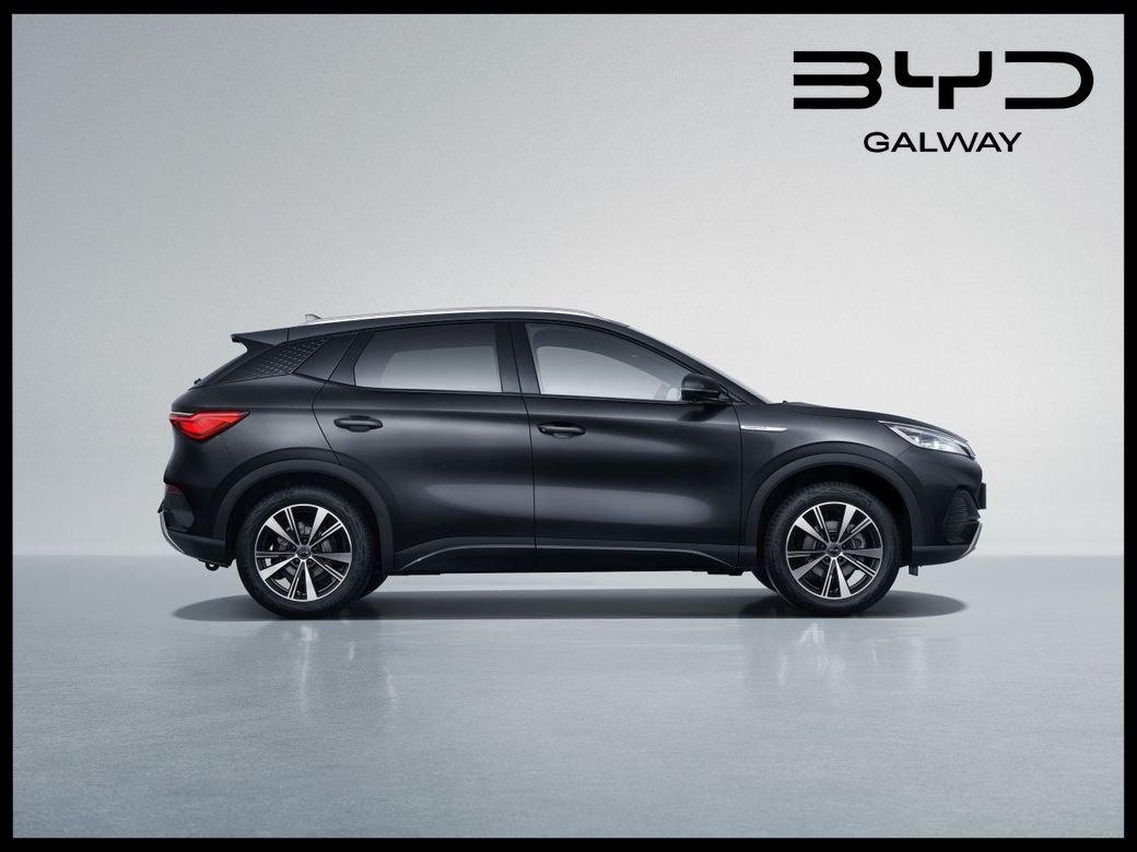 AVAILABLE FOR JANUARY 2026 DELIVERY. NEW Model BYD Atto 3 Comfort in Cosmos Black Metallic with Black Leather Interior. Also available in Skiing White and Climbing Grey with two-tone leather interior. The BYD ATTO 3 is an expressive and dynamic C segment compact crossover SUV, built on BYD’s state-of-the-art e-Platform 3.0 with BYD's renowned Blade Battery, in this model a 60.4kWh unit, offering a 420 kilometres range (WLTP combined cycle). The ATTO 3 Comfort comes with an extensive array of standard equipment with features including Panoramic electric glass sunroof -- Adaptive Cruise Control (ACC) & Intelligent Cruise Control (ICC) with Intelligent Speed Limit Information and Control -- Rotatable central touchscreen -- 8-speaker audio sound system -- Apple Carplay and Android Auto -- 8 years free cloud service with 1.5Gb data for infotainment per month for free in first 2 years -- Vehicle To Load (VtoL) function (cable extension included) -- Wireless phone charging pad -- Keyless system entry -- 360 degree cameras -- Front and rear parking radar sensors -- Heated front seats -- 6-way electrically adjustable drivers seat with electric lumbar support adjustment -- 4-way electrically adjustable passenger seat -- Dual zone automatic air conditioning with PM2.5 air purification -- Forward Collision Warning -- Automatic Emergency Braking -- Rear Collision Warning -- Front Cross Traffic Alert with front cross traffic braking -- Rear Cross Traffic Alert with rear cross traffic braking -- Traffic Sign Recognition -- Lane Departure Assistant and Lane Departure Warning -- Emergency Lane Keeping Assist -- 18-inch twin colour aluminium alloy wheels -- LED headlights with High beam assist -- Thermal insulated privacy glass -- Remote climate control -- Leather, multi-function steering wheel -- Front & rear centre armrest -- Split folding rear seats (60:40) -- Multi-colour ambient interior lighting -- Automatic anti-glare interior rear-view mirror -- Front passenger's airbag with deactivation switch -- ISOFIX on outer rear seats and front pass seat -- Driver Attention Warning -- Child Forgetting Detection (CFD) -- Software Over-the-Air (OTA) functions -- 11kW AC charging power -- 150kW DC charging power. All BYD vehicles come with an unbeatable warranty package consisting of 6 Years / 150,000km on the overall vehicle, 8 years / 200,000km on the HV Battery and 8 years / 150,000 km on the drive motor. Also included is the BYD Maintenance Plus package which consists of 4-Year or 60,000KM servicing including Brake Pads, Wiper Blades and Tyres (one set) that may be required within 48 months of first registration. To discuss this car further and / or receive a part exchange valuation please call into our showroom, phone us on 091 383000 or send us an online enquiry -- You can also reserve this car for 48 hours on our website -- Due to fast stock turnaround we recommend phoning in advance of travelling to check if the car of your choice is available -- We are an independently owned and operated dealership and our highly experienced team have over 100 years of combined motor industry experience. *Indicated price is a Subsidised Retail Price after state subsidies for private customers of VRT rebate and SEAI grant (Sustainable Energy Authority of Ireland). Business/Commercial buyers state subsidies comprise of VRT rebate only, please enquire for Business/Commercial pricing. All available state subsidies are subject to approval.