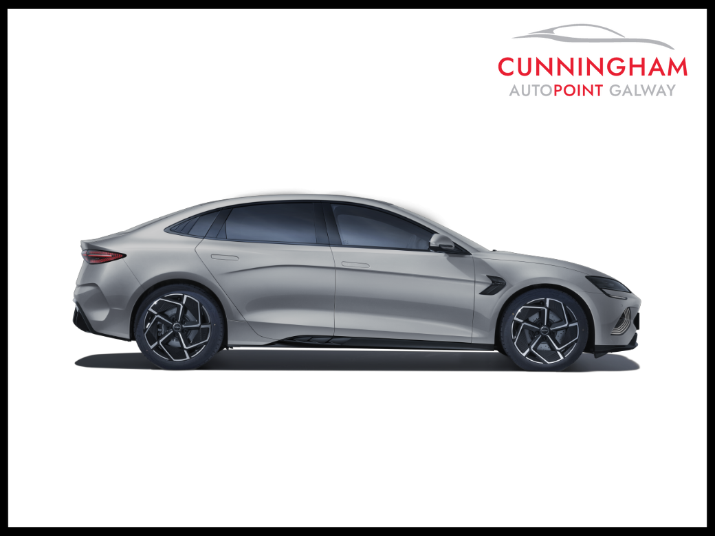 2025 (251) BYD Seal Design in Indigo Grey Metallic with Tahiti Leather Interior. Low mileage ex BYD management car now available at a substantial reduction on new price. The SEAL Design model is powered by a single-motor rear-wheel drive (RWD) powertrain with a power output of 230 kW (313 BHP) coupled to a 82.5kWh Blade battery offering a 570 kilometres range (WLTP combined cycle). This Seal Design comes with an unrivalled level of standard specification with features including Panoramic roof -- Adaptive Cruise Control (ACC) & Intelligent Cruise Control (ICC) with Intelligent Speed Limit Information and Control -- Traffic Jam Assist -- 12-speaker Dynaudio Audio sound system -- Apple Carplay and Android Auto -- Dual wireless phone charging pads -- Keyless system entry -- 360 degree cameras -- Front and rear parking radar sensors -- Front sports seats, fully electric, with ventilation, heating, position memory & integrated headrest -- Leather, multi-function and heated steering wheel -- Dual zone auto air conditioning with PM2.5 air filter -- Negative-ion generator -- Front and Rear Cross Traffic Alert with front cross traffic braking -- Traffic Sign Recognition -- Lane Departure Assistant and Lane Departure Warning -- Electric tailgate -- 19-inch twin colour aluminium alloy wheels -- LED headlights with High beam assist -- Remote climate control -- Split folding rear seats (60:40) -- Multi-colour ambient interior lighting -- ISOFIX on outer rear seats and front pass seat -- Child Forgetting Detection (CFD) -- Software Over-the-Air (OTA) functions -- 11kW AC charging power -- 150kW DC charging power. All BYD vehicles come with an unbeatable warranty package consisting of 6 Years / 150,000km on the overall vehicle, 8 years / 200,000km on the HV Battery and 8 years / 150,000 km on the drive motor. Also included is the BYD Maintenance Plus package which consists of the first two scheduled services plus any Brake Pads, Wiper Blades and Tyres (one set) that may be required within 24 months of first registration. To discuss this car further and / or receive a part exchange valuation please call into our showroom, phone us on 091 383000 or send us an online enquiry -- You can also reserve this car for 48 hours on our website -- Due to fast stock turnaround we recommend phoning in advance of travelling to check if the car of your choice is available -- We are an independently owned and operated dealership and our highly experienced team have over 100 years of combined motor industry experience.