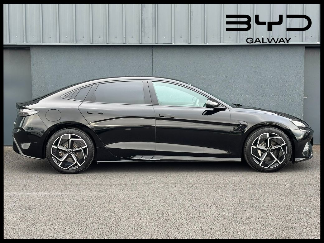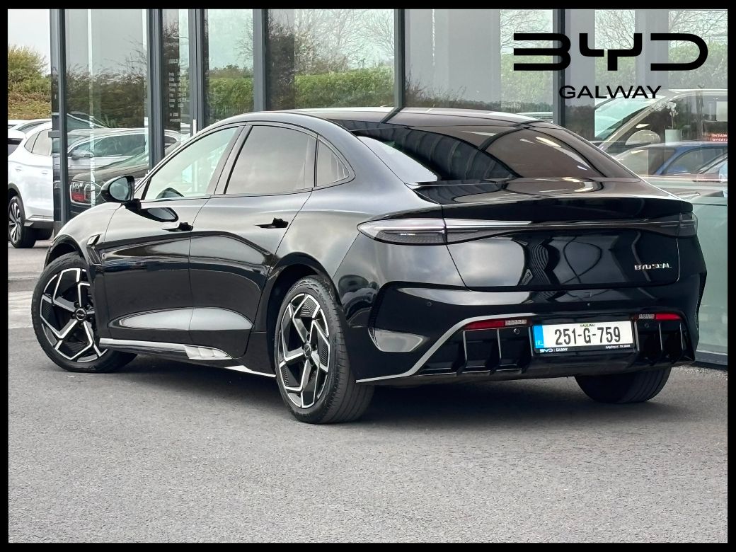 2025 (251G) BYD Seal Design RWD in Space Black with Light Tahati Leather Interior. The SEAL Design model is powered by a single-motor rear-wheel drive (RWD) powertrain with a power output of 230 kW (313 BHP) coupled to a 82.5kWh Blade battery offering a 570 kilometres range (WLTP combined cycle). This Seal Design comes with an unrivalled level of standard specification with features including Panoramic roof -- Adaptive Cruise Control (ACC) & Intelligent Cruise Control (ICC) with Intelligent Speed Limit Information and Control -- Traffic Jam Assist -- Rotatable 15.6-inch Intelligent central touchscreen -- 12-speaker Dynaudio Audio sound system -- Apple Carplay and Android Auto -- Dual wireless phone charging pads -- Keyless system entry -- 360 degree cameras -- Front and rear parking radar sensors -- Front sports seats with ventilation, heating, position memory & integrated headrest -- 8-way electrically adjustable drivers seat with electric lumbar support adjustment -- 6-way electrically adjustable passenger seat -- Dual zone automatic air conditioning with PM2.5 air filter -- Negative-ion generator -- Predictive Collision Warning -- Forward Collision Warning -- Front Cross Traffic Alert with front cross traffic braking -- Rear Cross Traffic Alert with rear cross traffic braking -- Traffic Sign Recognition -- Lane Departure Assistant and Lane Departure Warning -- Emergency Lane Keeping Assist -- Electric tailgate -- 19-inch twin colour aluminium alloy wheels -- LED headlights with High beam assist -- Integrated sport seats, heated and ventilated -- Leather, multi-function and heated steering wheel -- Electronic child safety locks -- ISOFIX on outer rear seats and front pass seat -- 11kW AC charging power -- 150kW DC charging power. All BYD vehicles come with an unbeatable warranty package consisting of 6 Years / 150,000km on the overall vehicle, 8 years / 200,000km on the HV Battery and 8 years / 150,000 km on the drive motor, all from date of first registration which on this car was 10.01.2025. Also included is the BYD Maintenance Plus package which consists of the first two scheduled services plus any Brake Pads, Wiper Blades and Tyres (one set) that may be required within 24 months of first registration. To discuss this car further and / or receive a part exchange valuation please call into our showroom, phone us on 091 383000 or send us an online enquiry -- You can also reserve this car for 48 hours on our website -- Due to fast stock turnaround we recommend phoning in advance of travelling to check if the car of your choice is available -- We are an independently owned and operated dealership and our highly experienced team have over 100 years of combined motor industry experience.