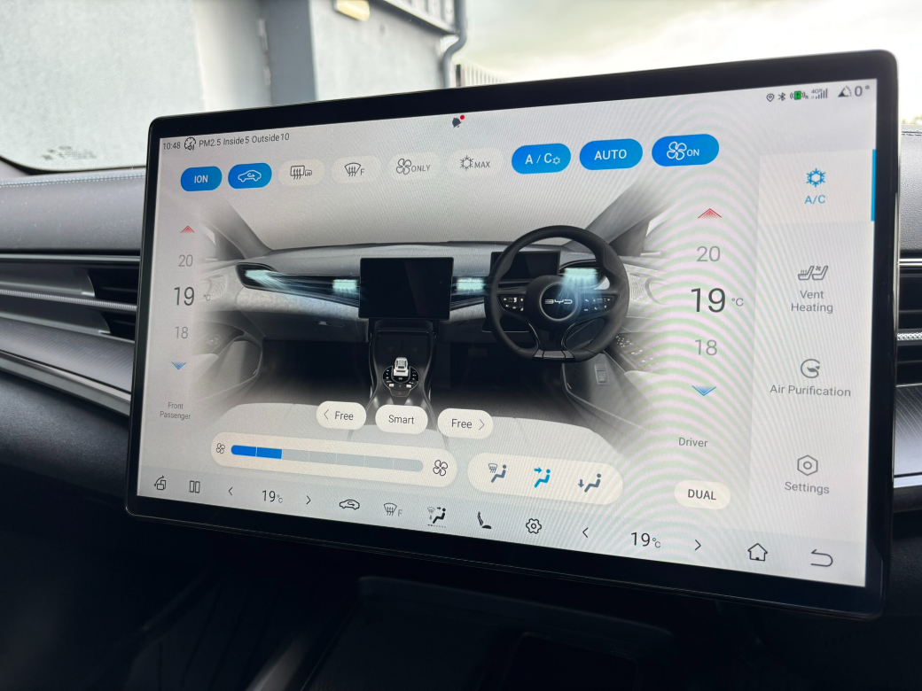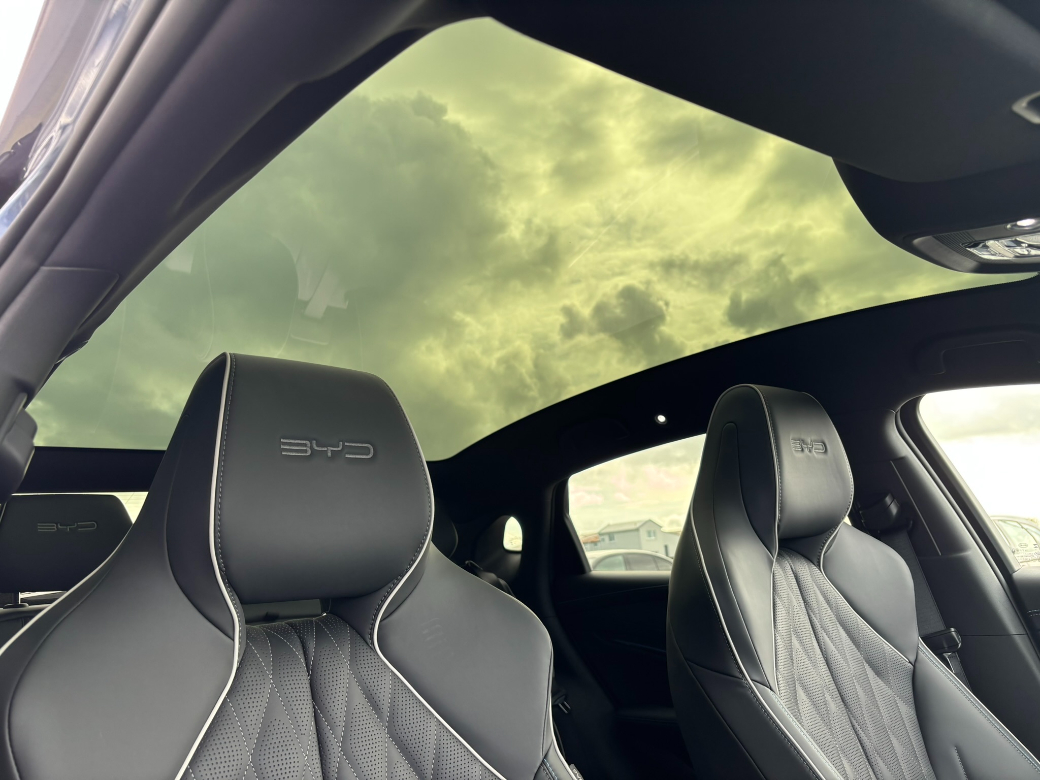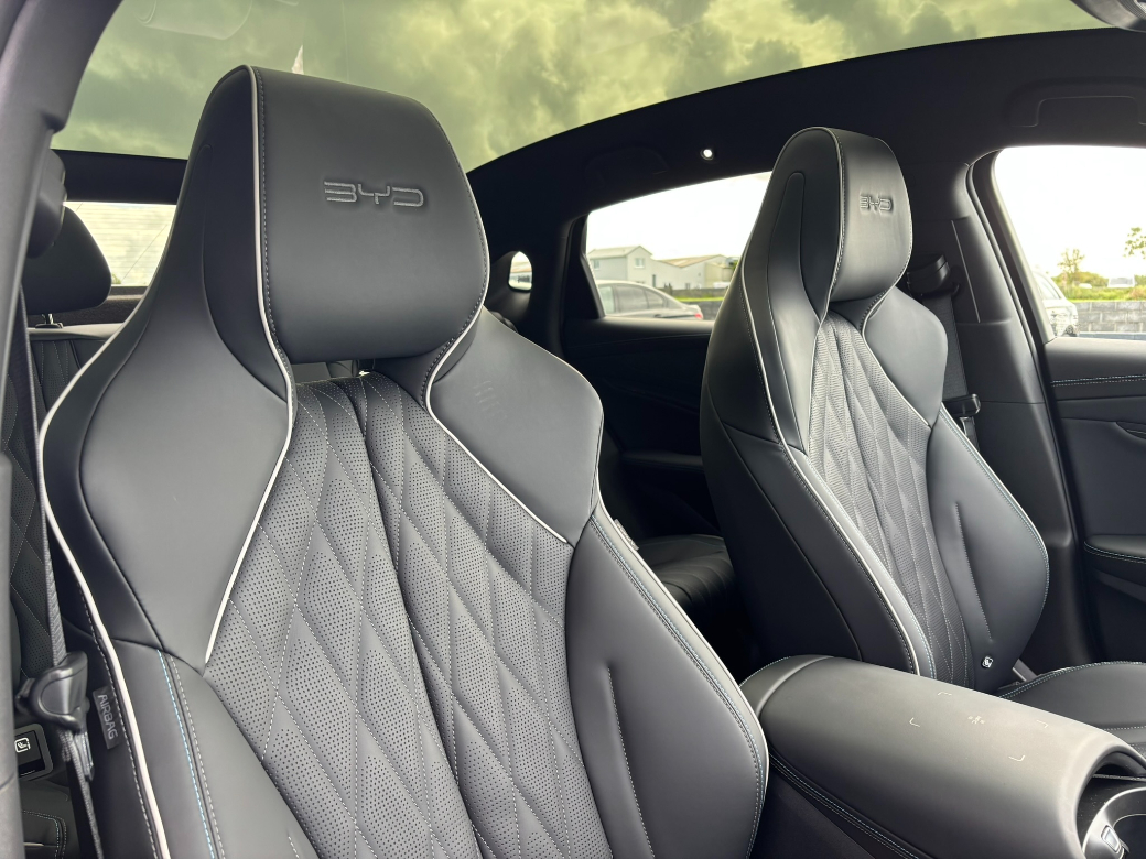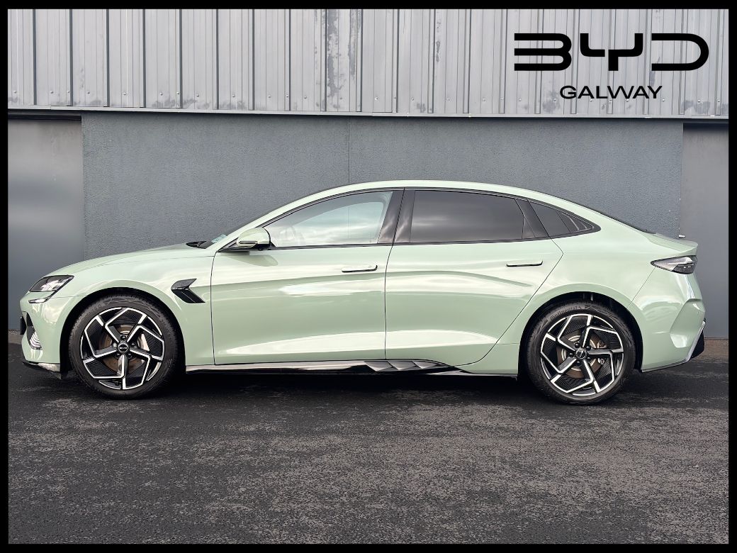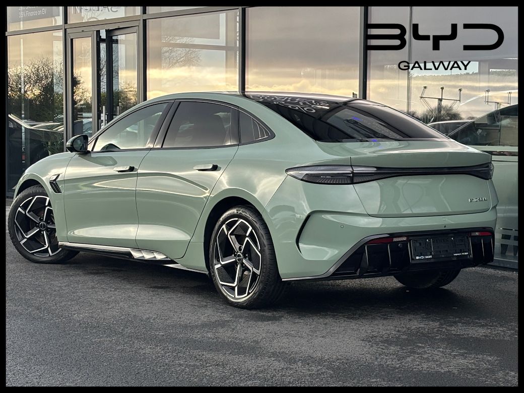 2025 (251) BYD Seal Design in Shadow Green with Black Leather Interior. The SEAL Design model is powered by a single-motor rear-wheel drive (RWD) powertrain with a power output of 230 kW (313 BHP) coupled to a 82.5kWh Blade battery offering a 570 kilometres range (WLTP combined cycle). Coming with an unrivalled level of standard specification with features including Panoramic roof -- Adaptive Cruise Control (ACC) & Intelligent Cruise Control (ICC) with Intelligent Speed Limit Information and Control -- Traffic Jam Assist -- 12-speaker Dynaudio Audio sound system -- Apple Carplay and Android Auto -- Dual wireless phone charging pads -- Keyless system entry -- 360 degree cameras -- Front and rear parking radar sensors -- Front sports seats, fully electric, with ventilation, heating, position memory & integrated headrest -- Leather, multi-function and heated steering wheel -- Dual zone auto air conditioning with PM2.5 air filter -- Negative-ion generator -- Front and Rear Cross Traffic Alert with front cross traffic braking -- Traffic Sign Recognition -- Lane Departure Assistant and Lane Departure Warning -- Electric tailgate -- 19-inch twin colour aluminium alloy wheels -- LED headlights with High beam assist -- Remote climate control -- Split folding rear seats (60:40) -- Multi-colour ambient interior lighting -- ISOFIX on outer rear seats and front pass seat -- Child Forgetting Detection (CFD) -- Software Over-the-Air (OTA) functions -- 11kW AC charging power -- 150kW DC charging power. This BYD come with the balance of its manufacturers warranty package consisting of overall vehicle cover to 31.03.2031 / 150,000km and HV battery 31.03.2033 / 200,000km. *Real world range is quoted from EV-database.org, an independent EV range monitoring website. Customers are advised to do their own research to further learn of a cars expected real-world versus claimed range. The EV-database website is well worth checking out as a source of extended information on all makes and models of Electric vehicles, both current models and previous models. To discuss this car further please call into our showroom, phone us on 091 383000 or send us an online enquiry -- You can also reserve this car for 48 hours on our website -- Due to fast stock turnaround we recommend phoning in advance of travelling to check if the car of your choice is available -- We are an independently owned and operated dealership and our highly experienced team have over 100 years of combined motor industry experience.