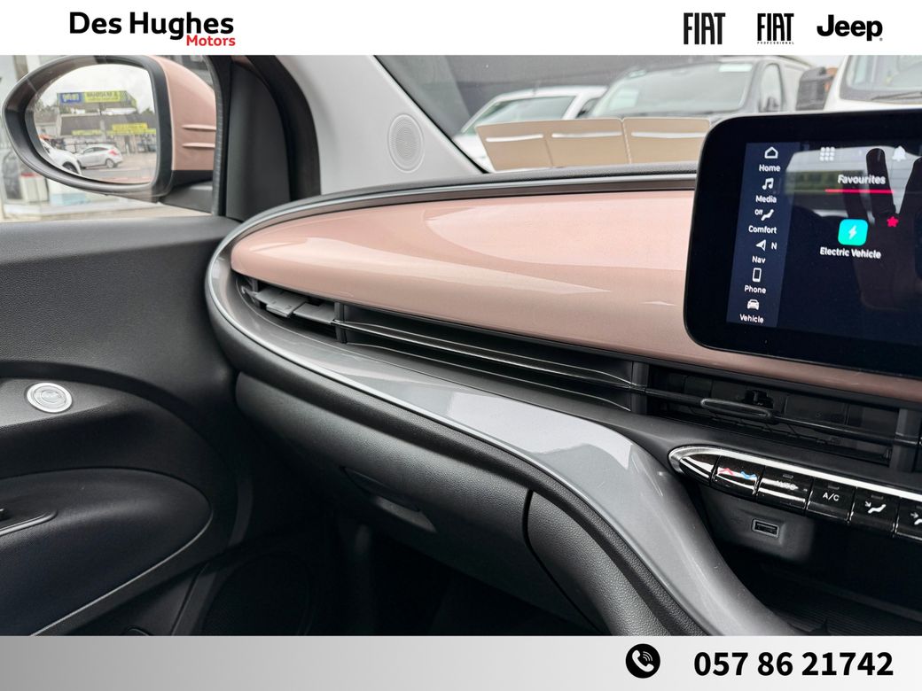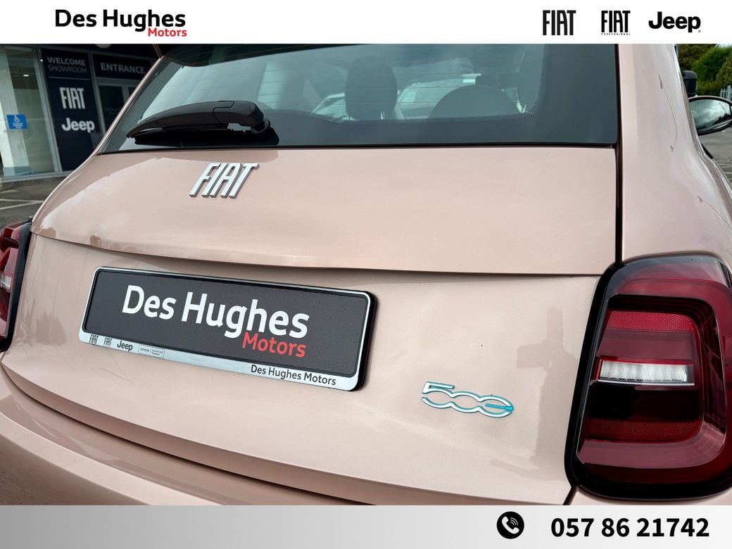 Contact COLIN for anymore info on 087 0541111. Fiat 500 E Icon model. Trade ins welcome. Finance available. Free Ev charger. Manufacturers warranty. Contact COLIN for anymore info on 087 0541111. Established in 1987, Des Hughes Motors brings decades of experience to the motor trade. We proudly represent Fiat, Jeep, and Fiat Professional across Laois and the surrounding counties. Previously serving as the main Toyota dealer in Laois for nearly 30 years, we remain the only authorised Toyota repairer in the county. Whether it’s your first or tenth vehicle purchase from us, we’re committed to ensuring you drive away happy. We operate with a transparent pricing policy — each vehicle is price-checked weekly, taking into account mileage, condition, specification, and warranty to ensure you always get the best value. Every vehicle we sell goes through a comprehensive pre-sale process, including: Full history check Tyre inspection (4mm tread minimum) Full vehicle service Complete valet and clean Opening Hours: Monday–Friday: 9:00 AM – 5:30 PM Saturday: 9:30 AM – 2:00 PM Closed on Bank Holiday weekends Get in touch: 📞 057 86 21742 📧 sales@deshughes.ie 💻 Apply for finance anytime at www.deshughes.ie.