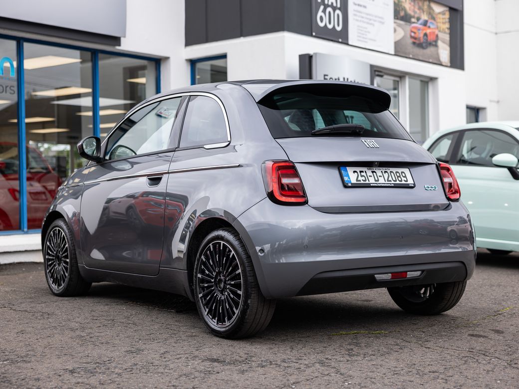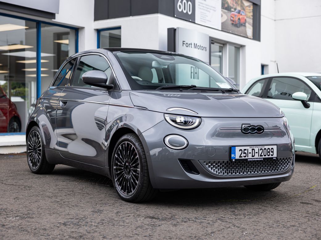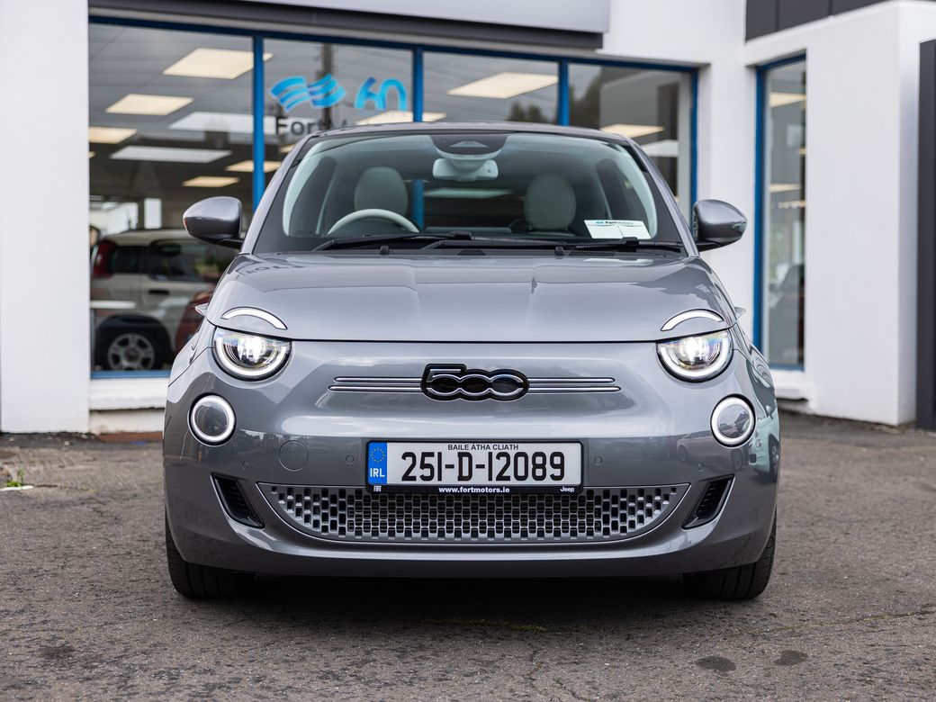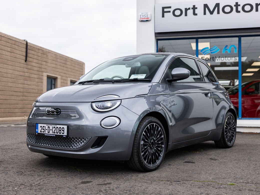 2025 FIAT 500e PRE REG 251-D REGISTERED WITH NO KILOMETRES TOP OF THE RANGE LA PRIMA , LOW RATE PCP FINANCE & LOANS ARRANGED , SCRAPPAGE DISCOUNT OR TRADE IN AVAILABLE , TO VIEW & TEST_DRIVE PLEASE CONTACT OUR SALES TEAM ON 01-4561811 PRE-REG FIAT 500e , All-Electric Fiat 500 , LA PRIMA MODEL , 42KWH, 118bhp, WLTP Range 320 KMs , HUGE SAVINGS FOR IMMEDIATE DELIVERY On Display In Our Showroom To View ,Test-Drive & Buy , FEATURES INCLUDE; • 50/50 Split Folding Rear Seats • 6-Way Manually Adjustable Driver Seat • Auto Dimming Rear View Mirror • Bi-Colour Eco-Leather Steering Wheel with Audio Controls • Eco-Leather Seats with Fiat Monogram • Front Centre Armrest • Rear Back Seat Pockets for Driver & Passenger Seats • USB in Centre Console EXTERIOR • 17" Alloy Wheels • Auto high/Low Beam • Chrome Exterior Accents (Side Moulding, DLO) • Electrically Adjustable and Heated Body Coloured Door Mirrors • Fixed Panoramic Sunroof • Kick Plate • LED Headlamps • Rear Parking Sensors FUNCTIONALITY • Electric Windows One Touch Up/Down for Driver & Front Passenger • JBL Premium Audio System • Traffic Sign Recognition with Intelligent Speed Assistant ONBOARD TECHNOLOGY • Fast Charge • Wireless Mobile Charging INTERIOR • Central Console with Sliding Door Cover • Floor Mats FUNCTIONALITY • Electric Parking Brake Winter Pack • Front Heated Seats • Heated Windscreen - Wiper Blade Area Pack Tech • 360° Parking Sensors • Blind Sport Warning • Lane Centering & Traffic Jam Assist • Rear View Parking Camera LOW RATE LOANS OR PCP FINANCE ARRANGED , TRADE-INS WELCOME , PLEASE CONTACT OUR SALES TEAM ON 01-4561811 Fort Motors Ltd . Cromwellsfort Road Walkinstown , Dublin D12 PX22 . Main Fiat Dealers . Established 1959 . 01-4561 811.