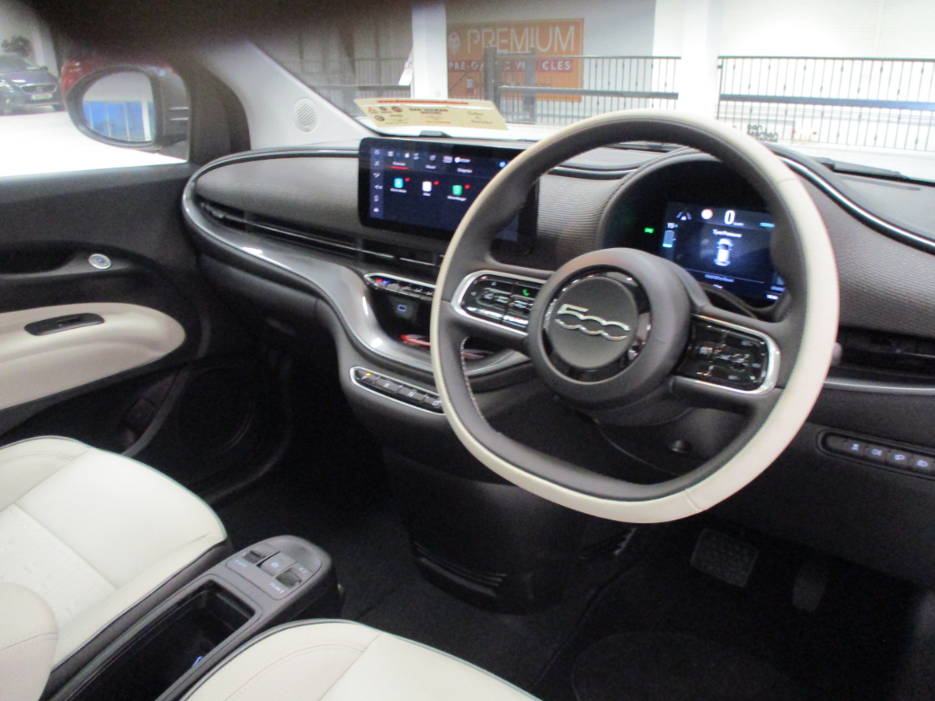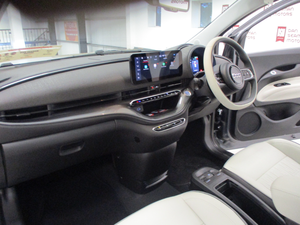 NEW 252 OFFERS: NEW PRICE FOR 2025 500 BEV 3.9% Hire Purchase or PCP Complimentary Charger (Energia) Wireless Mobile Charging Fixed Panoramic Sunroof Floor Mats with 500 Logo Eco-Leather Seats with Fiat Monogram Front Armrest Chrome Exterior Accents (Side Moulding, DLO) Kick Plate Rear Parking Sensors Electrochromic Rearview Mirror Auto high/Low Beam Traffic Sign Information Passive Entry (Driver’s Side) Wearable key Rain sensor 50/50 Split Folding Rear Seats Cruise Control DAB Radio Wireless CarPlay / Android Auto 10.25’’ Touchscreen Infotainment with Navigation Bi-Colour Eco-Leather Steering Wheel with Audio Controls 17" Alloy Wheels Dusk Sensors LED Headlamps LED Daytime Running Lights (DRL) LED Rear Lights Fast Charge (Up to 85kW) Mode 3 Charging Cable (AC three-phase 16A, 11kW) Automatic Air Conditioning Keyless Go TFT 7’’ Digital Instrument Cluster Enhanced Audio System E-call (SOS) Electric Parking Brake EV Mode Selector Attention Assist (Drowsiness Detection) Lane Keeping Assist Traffic Sign Recognition with Intelligent Speed Assistant Autonomous Emergency Braking 6-Way Manually Adjustable Driver Seat Front 12v Point Electrically Adjustable and Heated Body Coloured Door Mirrors Electric Windows (Driver and Passenger's One Touch Up/Down) Central Console with Sliding Door Closing Storage Space. Central Locking, EBD, Fog Lamps, Keyless Entry, Multiple Air Bags, Parking Sensors, Rain Sensors, Remote Central Locking, Side Impact Protection, Traction Control, Brake Assist System, 2 Keys Available, Autonomous Emergency Braking, Adaptive Cruise Control, Automatic Lights, Automatic Wipers, Collision Alert, Daytime Running Lights, Driver Fatigue Warning, Isofix Points, Lane Departure Warning, Lane Keeping Assistance, Manufacturer's Warranty, Parking Assistance, Traffic Sign Recognition, Driver Assistance Pack, Autonomous Cruise Control, Rear Parking Sensors
