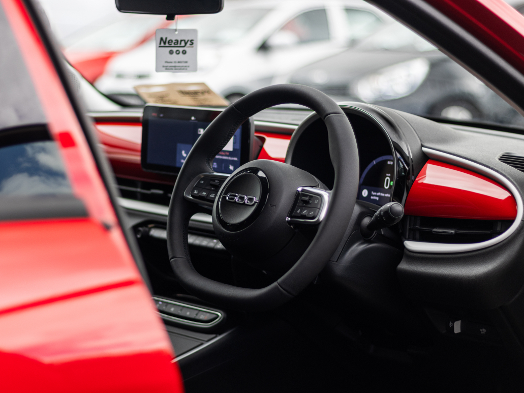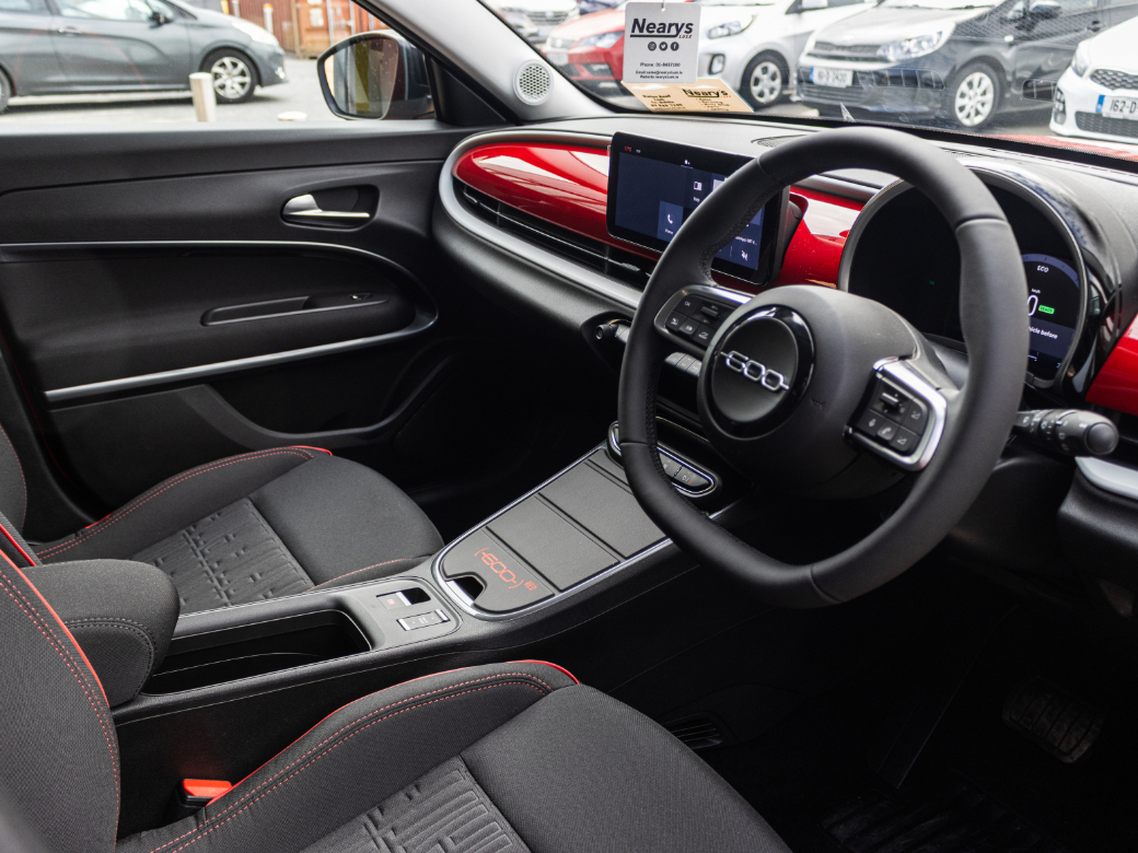 Neary's Lusk - Fiat - Jeep - Fiat Professional 500 + 100 = the Perfect Formula for You! Get on board the new Fiat 600 and experience the advantages of having a plus in your driving style. In the new 600 you will have +space, +comfort, +versatility, +features, +dolcevita and, of course, +freedom, with a range of up to 408 kilometes (WLTP combined cycle). Add this plus into your life: jump into the new Fiat 600 and get to know the +100 extra features it brings. Call Conor or Noah on 01-8437100 for sales or email sales@nearyslusk.ie **PRICE EXCLUDES DELIVERY AND METALLIC**. EBD, Remote Central Locking, Traction Control, 2 Keys Available, Autonomous Emergency Braking, Isofix Points, Lane Departure Warning, Lane Keeping Assistance, Manufacturer's Warranty, LED Headlights, Rear Parking Sensors, Stability Control