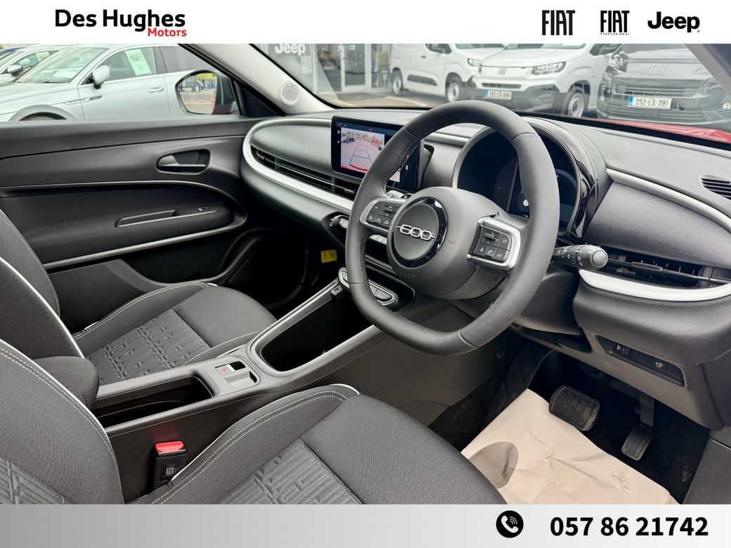Contact COLIN for anymore info on 087 0541111. Fiat 600 1.2 hybrid automatic dolce vita model. In stock and ready to go. Trade ins welcome. Finance available. Contact COLIN for anymore info on 087 0541111. Established in 1987, Des Hughes Motors brings decades of experience to the motor trade. We proudly represent Fiat, Jeep, and Fiat Professional across Laois and the surrounding counties. Previously serving as the main Toyota dealer in Laois for nearly 30 years, we remain the only authorised Toyota repairer in the county. Whether it’s your first or tenth vehicle purchase from us, we’re committed to ensuring you drive away happy. We operate with a transparent pricing policy — each vehicle is price-checked weekly, taking into account mileage, condition, specification, and warranty to ensure you always get the best value. Every vehicle we sell goes through a comprehensive pre-sale process, including: Full history check Tyre inspection (4mm tread minimum) Full vehicle service Complete valet and clean Opening Hours: Monday–Friday: 9:00 AM – 5:30 PM Saturday: 9:30 AM – 2:00 PM Closed on Bank Holiday weekends Get in touch: 📞 057 86 21742 📧 sales@deshughes.ie 💻 Apply for finance anytime at www.deshughes.ie.