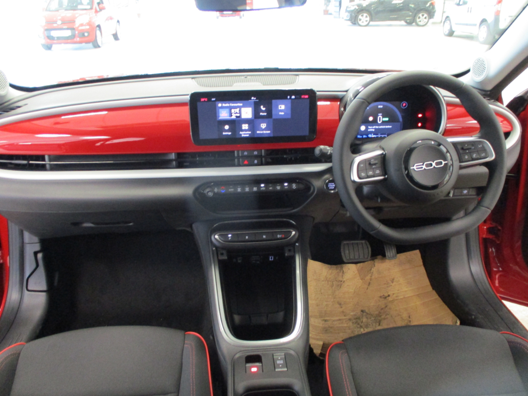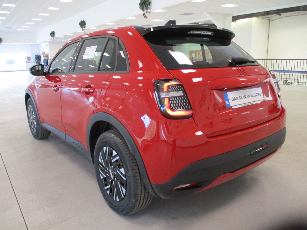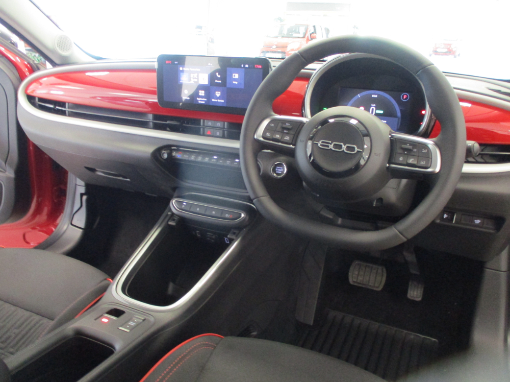 NEW 261 OFFERS: 3.9% Finance on PCP Full Range 4.9% Finance on HP Full Range 5 Year Extended Warranty 3 Year Service Plan Complimentary Home Charger(energia) •7” TFT Full Digital Cluster •16" Steel Wheels with Covers •10.25” DAB Radio with USB Type A+C •LED Foglamps with Cornering Function •12V Socket •LED Front Turn Indicator/Position Lights •Black Recycled Fabric Seat Upholstery with Fiat Monogram •LED Rear Lights •B-pillar Glossy Black •LED Reflector Headlamps •Foldable 2nd Row Seats 40/60 •Power Door Mirrors Painted Black •Front Central Armrest •Front Seat Backrest Pocket (Driver/Passenger) •Internal Door Handles Chrome •Manual Day/Night Rearview Mirror •Painted Dashboard Fascia •Red Version Kit •Synthetic Leather Steering Wheel FUNCTIONALITY ONBOARDTECHNOLOGY •Automatic A/C, Single Zone •11Kw On Board Charger •Cruise Control •4 Speaker Audio System •Driver Seat 6-Way Manual Adjustments •Antitheft Volumetric •Electric Parking Brake with Auto Hold •Cable Mode 3 •EV Drive Mode Selector •Connectivity Services •Front Passenger Seat 4-Way Manual Adjustments •Ecall Emergency Response System •Front/Rear Power Windows Express Up/Down •Pedestrian Emergency Breaking •Keyless Start •Rain Sensor •Rear Parking Sensors. Central Locking, Fog Lamps, Keyless Entry, Multiple Air Bags, Parking Sensors, Remote Central Locking, Side Impact Protection, Traction Control, 2 Keys Available, Automatic Lights, Automatic Wipers, Daytime Running Lights, Isofix Points, Manufacturer's Warranty, Parking Assistance, Traffic Sign Recognition, Driver Assistance Pack