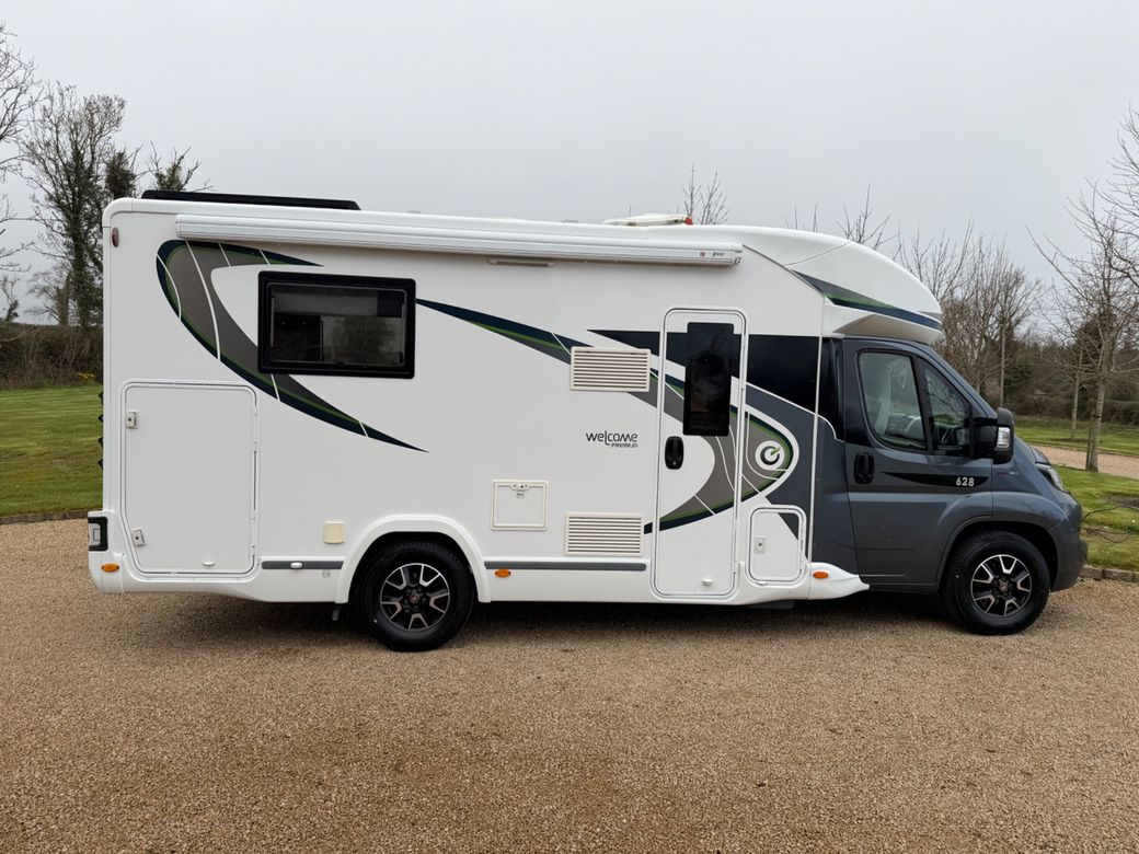 IN STOCK 2019 - 191 CHAUSSON WELCOME 628 PREMIUM LOW PROFILE L.H.D BASED ON A FIAT DUCATO 2.3 MULITJET 150BHP LEFT HAND DRIVE,MANUAL,53500MLS,4 BERTH,TO THE REAR THE EVER POPULAR ISLAND BED AND TO THE FRONT A DROP DOWN DOUBLE OFFERING FOUR SLEEPING PLACES,BATHROOM AND SEPARATE SHOWER,SINK,HOB,OVEN,GRILL,FRIDGE FREEZER,SWIVEL SEATS,SKY LIGHT,LEATHER TRIM WITH LOTS OF INTERIOR STORAGE,ALLOYS,AWNING,BIKE RACK,REAR CAMERA,SOLAR PANELS,LARGE GARAGE,THIS MOTORHOME IS IN EXCELLENT CONDITION IN SIDE AND OUT,CALL 0599147619 TO ARRAGE A VIEWING AND A TEST DRIVE. €79,950 TRADE IN PRICE.