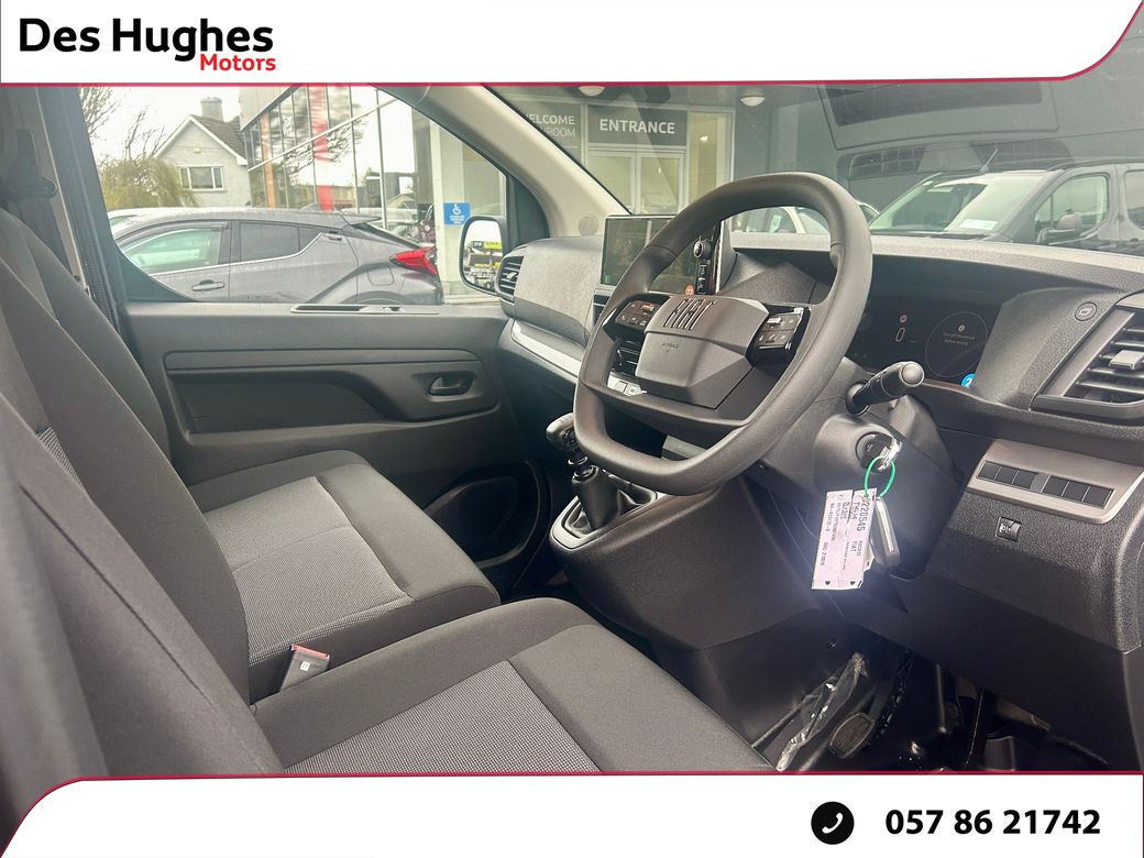 Contact COLIN for anymore info on 087 0541111. Fiat Scudo 1.5 diesel technico plus L2 model with upgraded wheels and side bars. Trade ins welcome. Finance available. Price is + Vat = €36450 5 years/200000kms warranty. Contact COLIN for anymore info on 087 0541111. .Located in Portlaoise Des Hughes Motors, Established in 1987 we have a lifetime of experience in the Motor Trade. We are the Fiat, Jeep & Fiat Professional dealers for Laois and surrounding areas. Having previously represented Toyota in Laois for nearly 30 years, and remain the only Toyota Authorised repairer in Laois. We strive to always ensure that you leave happy, whether its is your 1st or 10th car to purchase from Des Hughes Motors. We operate a transparent pricing structure, we price check all our vehicles on a weekly basis, comparing condition, mileage, specification, and warranty terms to ensure we can always offer outstanding value to our customers. All of our vehicles undergo a comprehensive presale process which includes a History Check, Tyre Check (4mm Minimum), Vehicle Service & Vehicle Valet. We are Open Monday to Friday 9:00-5:30, Saturday 9:30-2:00. We are closed during Bank Holiday Weekend. Contact us on 057 86 21742 | sales@deshughes.ie or apply for finance 24/7 on www.deshughes.ie.