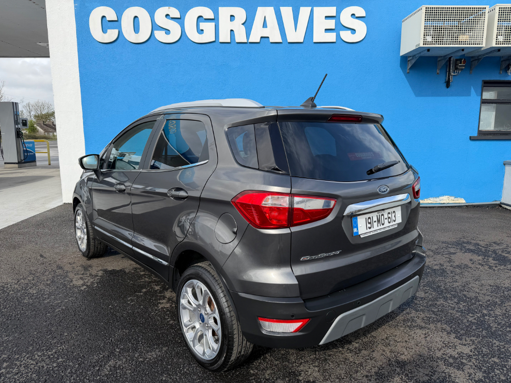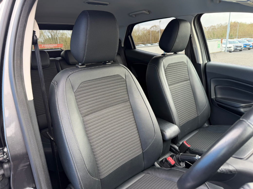 2019 (191) Ford Ecosport Titanium 1.5 Diesel Manual This car is finished in a Smoke grey metallic paint and a full black cloth interior We can arrange finance on this car at very competitive rates Some of the extras on this car include: Alloys Reversing camera Bluetooth Cruise control Keyless ignition Air conditioning Touchscreen display This car will be fully serviced and checked over by our in house technicians before delivery. Supplied with our own in house comprehensive warranty and FREE nationwide delivery. We accept all makes and models of trade ins, contact our sales team today on 094-9023266 to get a valuation on your trade in or for more information. Anti-Theft System, Central Locking, EBD, Fog Lamps, Parking Sensors, Traction Control, Brake Assist System, Automatic Wipers, Daytime Running Lights, Hill-Start Assist