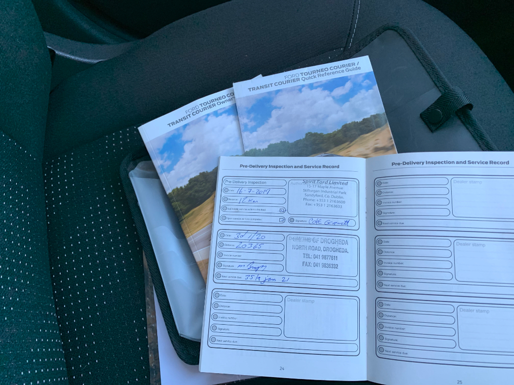Just Arrived. This spotless 2019 Ford Transit Courier 1.5 Tdci 6SP Trend with Bluetooth, Rear Parking Sensors and a Side Sliding Door. Full Documented Service History and no expense was ever spared. 173800 KM's. There's an Excel Spreadsheet available detailing every single spend to date. One previous owner and the van is a credit to them. The price Excludes VAT (€8950 Including VAT). 07/26 CVRT. A dream to drive with Ford reliability. Extremely economical to run with its very efficient 1.5 Diesel 6 Speed engine. A van not to be missed. The bodywork is in great condition, the cabin is spotless and the load area has only seen very light work. Front Fog Lights, Bluetooth, Rear Parking Sensors, Multi Functional Steering Wheel, USB Port and Electric Windows are all standard just to list a few. Don't miss this spotless example.................................Its supplied fully serviced, professionally valeted and with a warranty. At Beechlawn Motors Ltd we have over 18 years experience in supplying quality used vehicles. With over 100 Cars and Commercial in stock we have a vehicle to suit everyones needs. (Finance Available on a certain models). Beechlawn Motors Ltd, Unit GA1, Sitecast Industrial Estate, Greenhills Road, Dublin 24, D24 YE2K. Opening hours Monday - Friday 8.00 - 17.00. Saturday 10.00 - 14.00. Closed Sunday. After hours by appointment only. 01-4508514 or 086-8393233. Central Locking, EBD, Remote Central Locking, Traction Control, Brake Assist System, Hill-Start Assist
