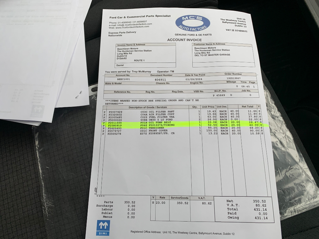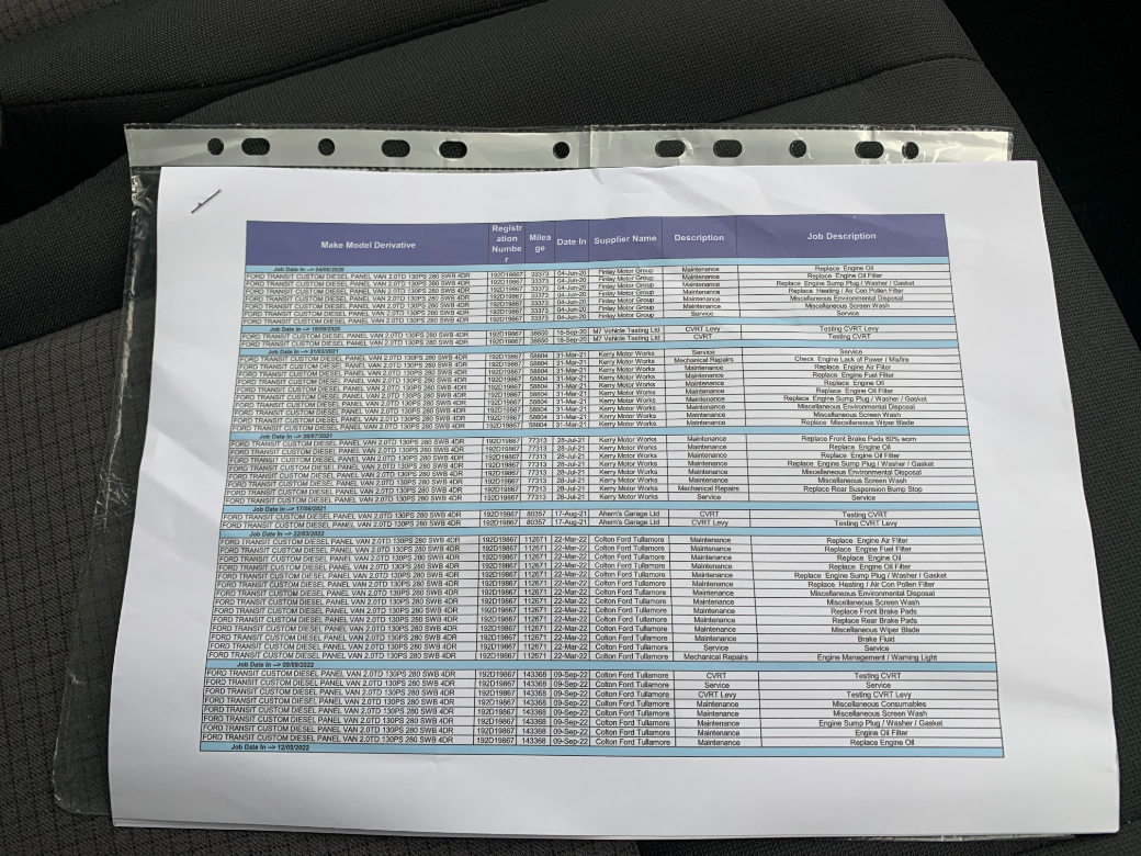 Just Arrived. This 2019 Ford Transit Custom 2.0 Tdci 130 PS SWB Van. 215300 KM's. One previous owner. Full Documented Service History and no expense was ever spared. There's an Excel Spreadsheet available detailing every single spend to date. 08/26 CVRT. The price Excludes VAT (€11950 Including VAT). A dream to drive with Ford reliability. A van not to be missed. Bluetooth, Multi Functional Steering Wheel, Electric Windows and a USB Port are all standard just to mention a few...............................Its supplied fully serviced, professionally valeted and with a warranty. At Beechlawn Motors Ltd we have over 18 years experience in supplying quality used vehicles. With over 100 Cars and Commercial in stock we have a vehicle to suit everyones needs. (Finance Available on a certain models). Beechlawn Motors Ltd, Unit GA1, Sitecast Industrial Estate, Greenhills Road, Dublin 24, D24 YE2K. Opening hours Monday - Friday 8.00 - 17.00. Saturday 10.00 - 14.00. Closed Sunday. After hours by appointment only. 01-4508514 or 086-8393233. Central Locking, EBD, Remote Central Locking, Traction Control, Brake Assist System, Hill-Start Assist