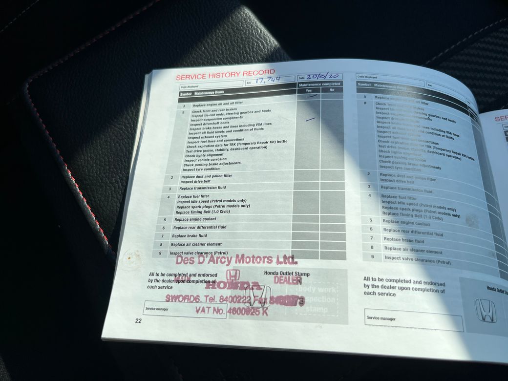 JUST ARRIVED!! This HONDA CIVIC SALOON SMART PLUS 1.0 PETROL.. In stunning condition inside and out.. A fantastic car to drive.. It comes with a huge spec including.. Call ANDREW RYAN for more info on Ph 0851259422 or email andrewryan@evramotors.ie - Digital Drivers Display - Reverse Camera - Parking Sensors - Android/Apple Carplay - Adaptive Cruise Control - Sat Nav - Media Touch Screen - Air Con - Bluetooth - Multi Function Steering Wheel ***NEW NCT INCLUDED***TAX €190 PER YEAR*** Here at Evra Motors we have a friendly knowledgeable sales team with over 20 years experience in the business. We are proud to be an AA Approved dealer with peace of mind as standard. We aim to stock a wide range of over 300 carefully selected premium AA Approved used cars all sourced directly from main dealerships here in Ireland. We aim to supply all our cars at the most competitive prices in the country. Extended warranty available on certain makes and models. Delivery can be arranged throughout the country. Each of our retail cars comes with a detailed history report and fully serviced or health checked by our in house service team of mechanics, a valid NCT will be provided and every car will be valeted prior to collection. Tailored finance packages available. We are open 6 days a week. For more information on our cars please contact ANDREW RYAN on Ph 0851259422 or email andrewryan@evramotors.ie Due to a high turnover in stock we recommend that you contact our sales team to make sure the car is still available and to make an appointment.