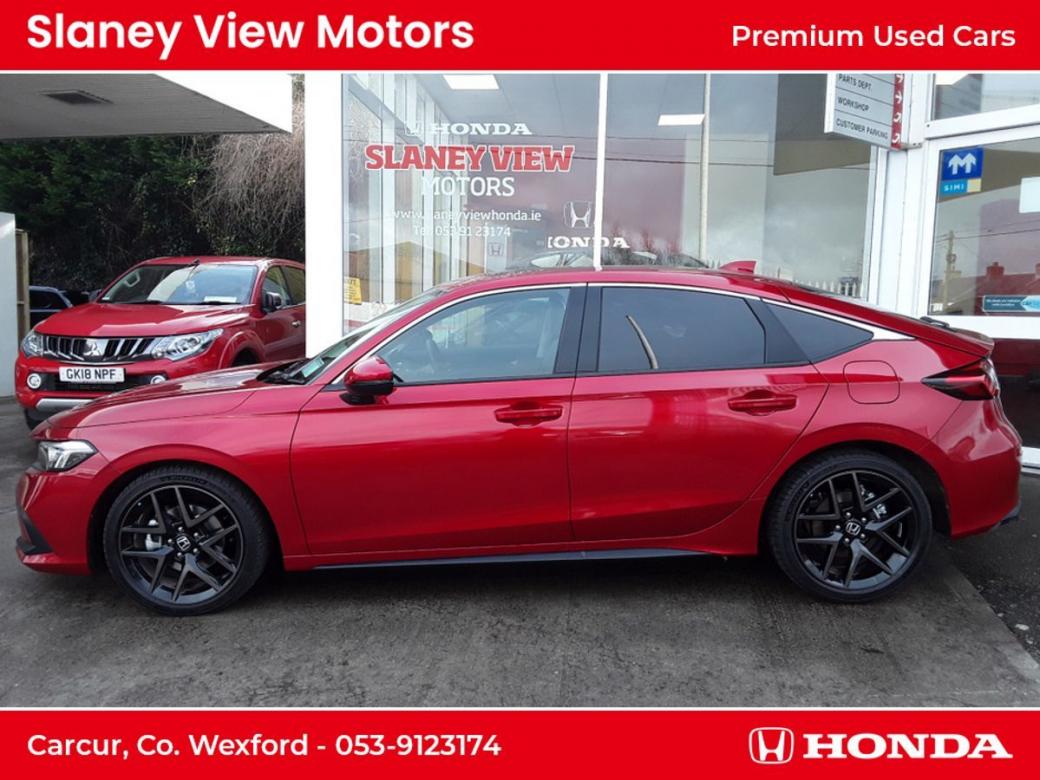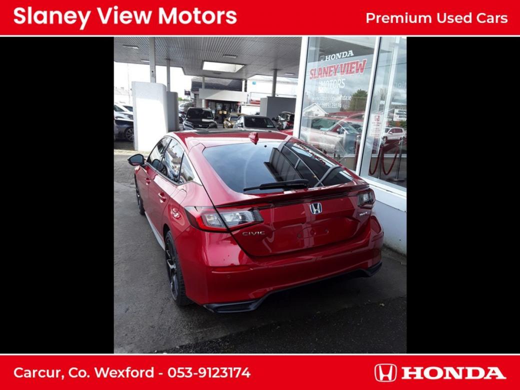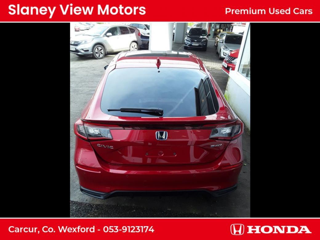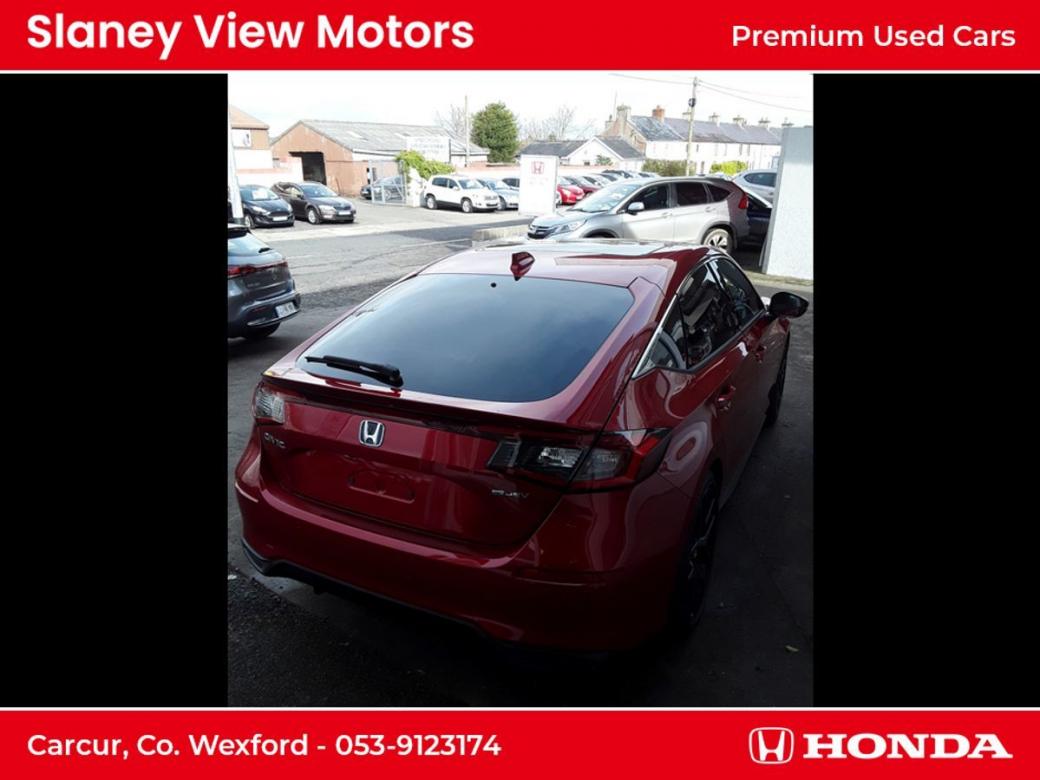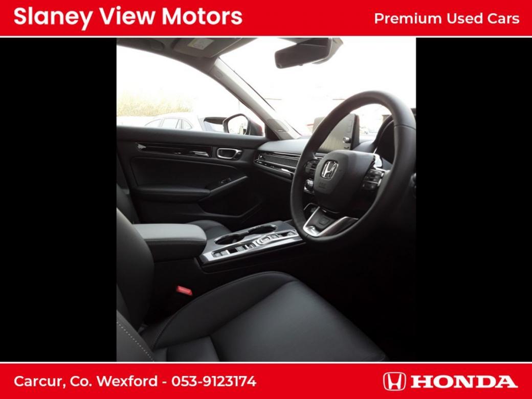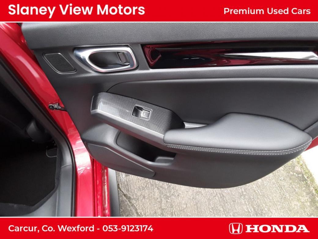 The all-new Civic eHEV embodies self-charging hybrid technology at its most advanced with responsiveness and efficiency built-in. Every drive delivers exhilaration with pleasure and because eHEV gives you a full hybrid experience, the Civic can run exclusively on smooth, silent electric power - unlike a mild hybrid. Honda eHEV technology means you can enjoy the benefits of electrified motoring, such as instant power, all of the time. As a self-charging hybrid that makes its own electricity, youll never need to connect to the mains its maximum energy with minimum fuss. The all-new Civic really is the drivers hybrid. Switching effortlessly between Normal, Sport, Econ and Individual allows you to tailor your drive to suit your preference and get the best performance from the eHEV system. Immerse yourself in a generous and stylish interior the all-new Civics longer wheelbase creates more space and greater comfort for you to enjoy. An ergonomic driving position, plus Hondas new Body Stabilising front seats reduce the stress of a long journey and are a further innovation designed to help you drive relaxed and arrive refreshed. Intelligently designed fabrics and quality you can feel make the cabin a refined place to be at any pace. An enhanced suite of Honda SENSING features and a total of 11 airbags are proof-positive that safety is built into the very fabric of the all-new Civic. The new 100 front wide-view camera has enhanced road marking and vehicle recognition abilities, while the rear camera and the all-round sonar sensors make the Civic one of the safest places on the road. Specs Include- 10.2 Multi Info Display Adaptive Driving Beam Air Conditioning Dual Zone Auto with Rear Vent Blind Spot Information Four Driving Modes Front Fog Lights Heated Steering Wheel Honda CONNECT with Navigation, 9 touchscreen, AM / FM / DAB, Apple CarPlayand Android Auto Honda SENSING Leather Seats LED Lights Opening Panoramic Glass Roof Power Front Seats Premium Audio with 12 Bose Speakers Privacy Glass Rear View Camera with Front and Rear Parking Sensors Wireless Charging.