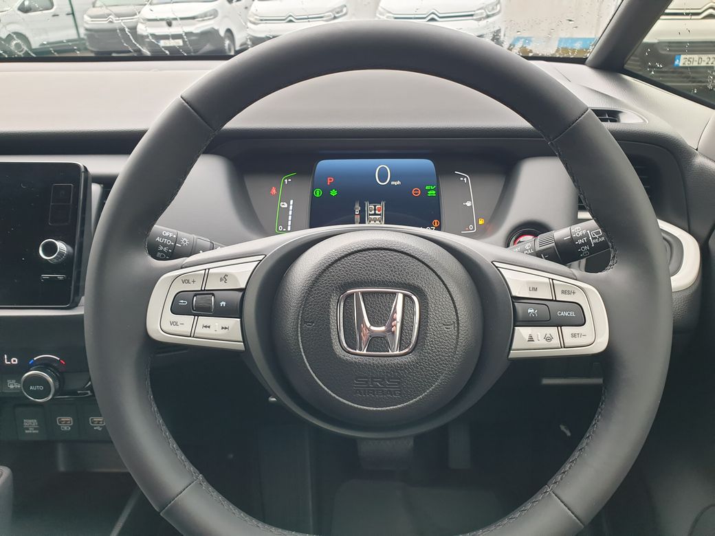 New Honda Jazz 1.5 Hybrid " Elegance " Model Platinum Crystal White (Metallic) 1.5 Hybrid Automatic NOW WITH 5 YEAR WARRANTY & 3 YEARS FREE SERVICING Specification includes; 15" Unique Alloy Wheels Front and Rear Park Sensors , Reverse Camera , Adaptive Cruise Control , Air/Con , Iso Fix on 2 seats , Blue Tooth , , Apple Car Play & Android Low Speed Following Knee Airbags Magic Seats Trade ins welcome; Low Rate HP Loans & PCP Finance available , Nationwide delivery organised. Honda South Dublin . Whitechurch Road , Rathfarnham , Dublin D14 PF89 . Tel; 01-4954445. Alarm, Central Locking, Multiple Air Bags, Parking Sensors, Remote Central Locking, Side Impact Protection, Traction Control, 2 Keys Available, Adaptive Cruise Control, Automatic Lights, Automatic Wipers, Daytime Running Lights, Engine Immobiliser, Front Parking Sensors, Hill-Start Assist, Isofix Points, Lane Departure Warning, Manufacturer's Warranty, Reversing Camera, LED Headlights, Rear Parking Sensors, Remote Door Release, Stability Control