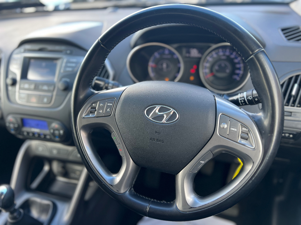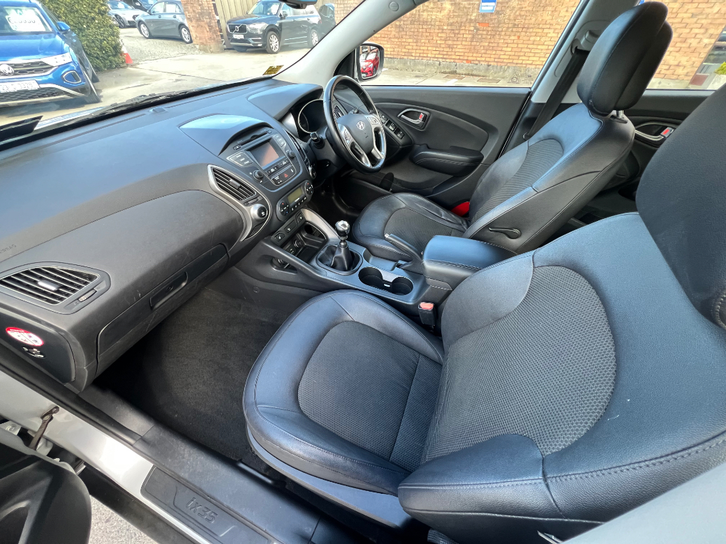 **ONLY TEN MINUTES FROM BLANCHARDSTOWN SHOPPING CENTRE** 2015 Hyundai IX35 1.7 Diesel Executive in immaculate condition throughout. Original Irish car with an excellent service record, very low kms and huge spec to include: upgraded alloy wheels, rear privacy glass, electric windows & mirrors, folding mirrors, parking sensors, reverse camera, leather upholstery, heated front seats, bluetooth telephone system, lane assist, piano black dash inlays, cruise control, media control unit, front centre armrest, sport seats, climate control with A/C, leather multifunction sport steering wheel, abs, isofix, esp, multiple airbags etc. For further information, please contact Aaron on 01 8017777 / 083 1155301.